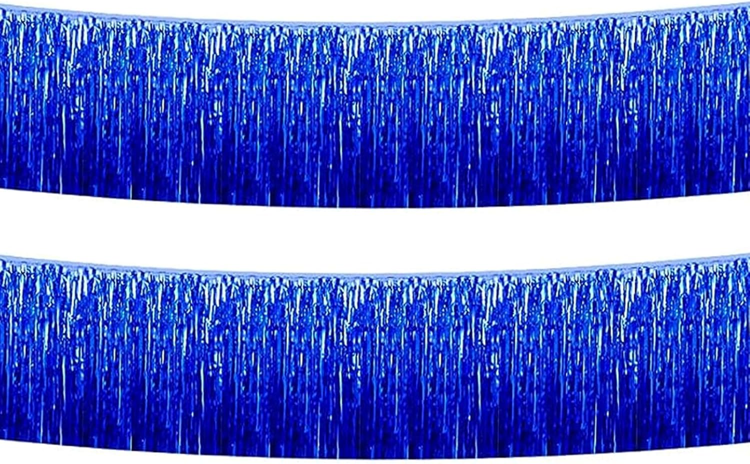 Blue Foil Fringe Garland 10FT 2packs, Metallic Foil Tinsel Fringe Banners for Parade Float Decorations Wedding, Birthday Party Graduation (Two Blue)