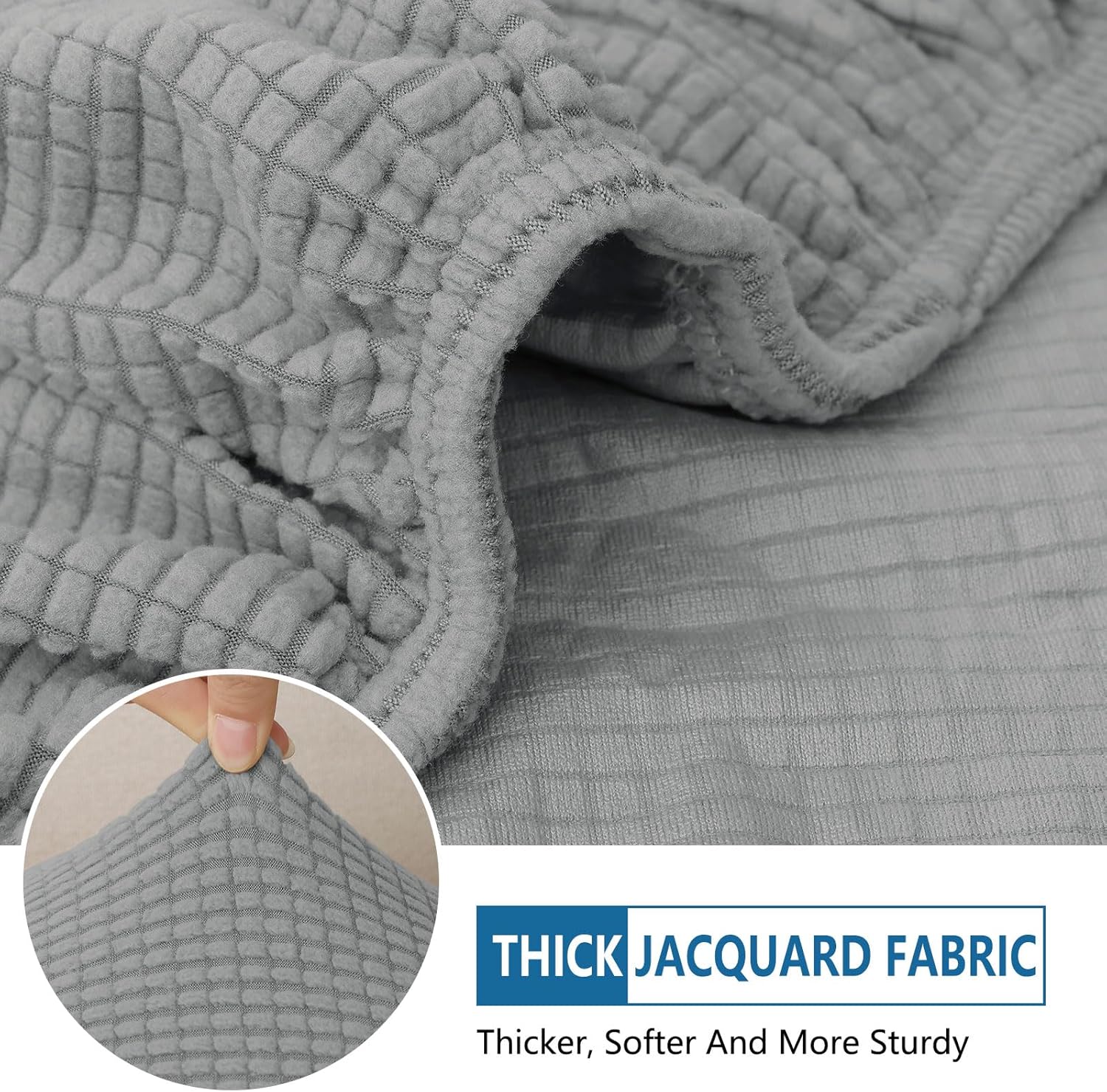 hyha Waterproof Couch Cushion Covers for Pets, Non Slip Sofa Seat Cover for Dogs Washable, Soft Thick Stretch Jacquard Fabric, Sofa Slipcovers with Elastic Bottom (2 Pieces, Light Grey)