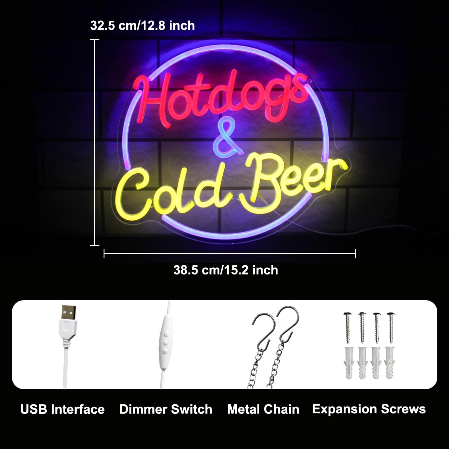 - 【Business Neon Sign】If you are running a restaurant/bar/hot dog stand/convenience store, then this hot dogs & cold beer neon letter sign is exactly what you need. Lighting it up not only attracts guests, but also adds a lively atmosphere to your room. Say goodbye to traditional billboards!