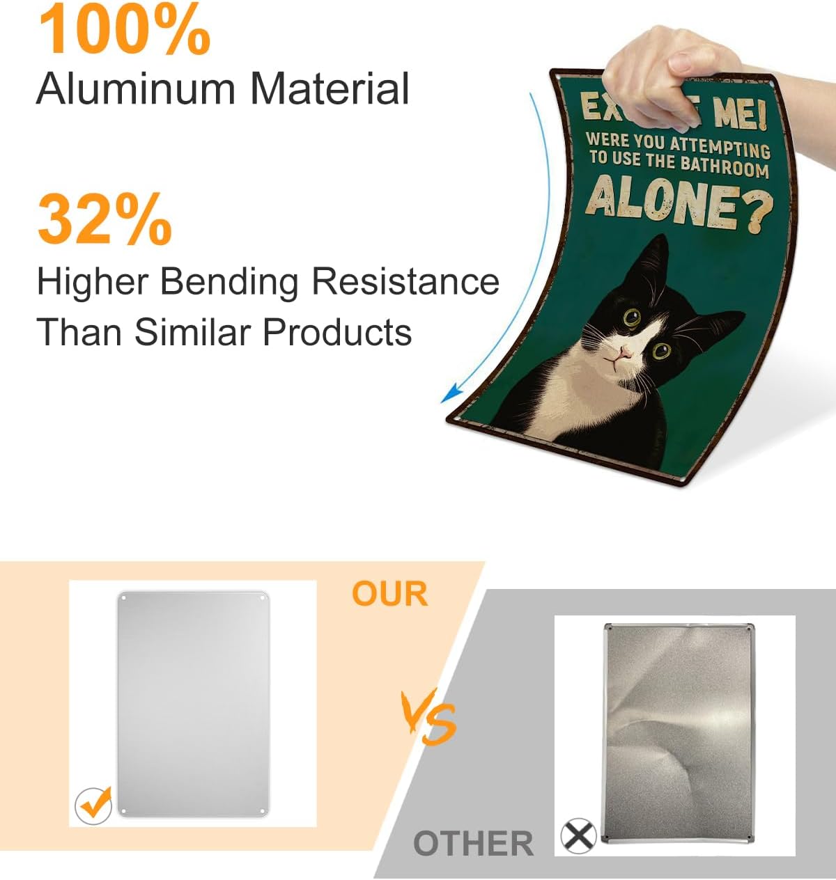 ALKB Funny Tuxedo Cat Metal Signs Black Cat Metal Poster Tuxedo Cat Lover Gift Vintage Bathroom Wall Decor 8 x 12 Inch
