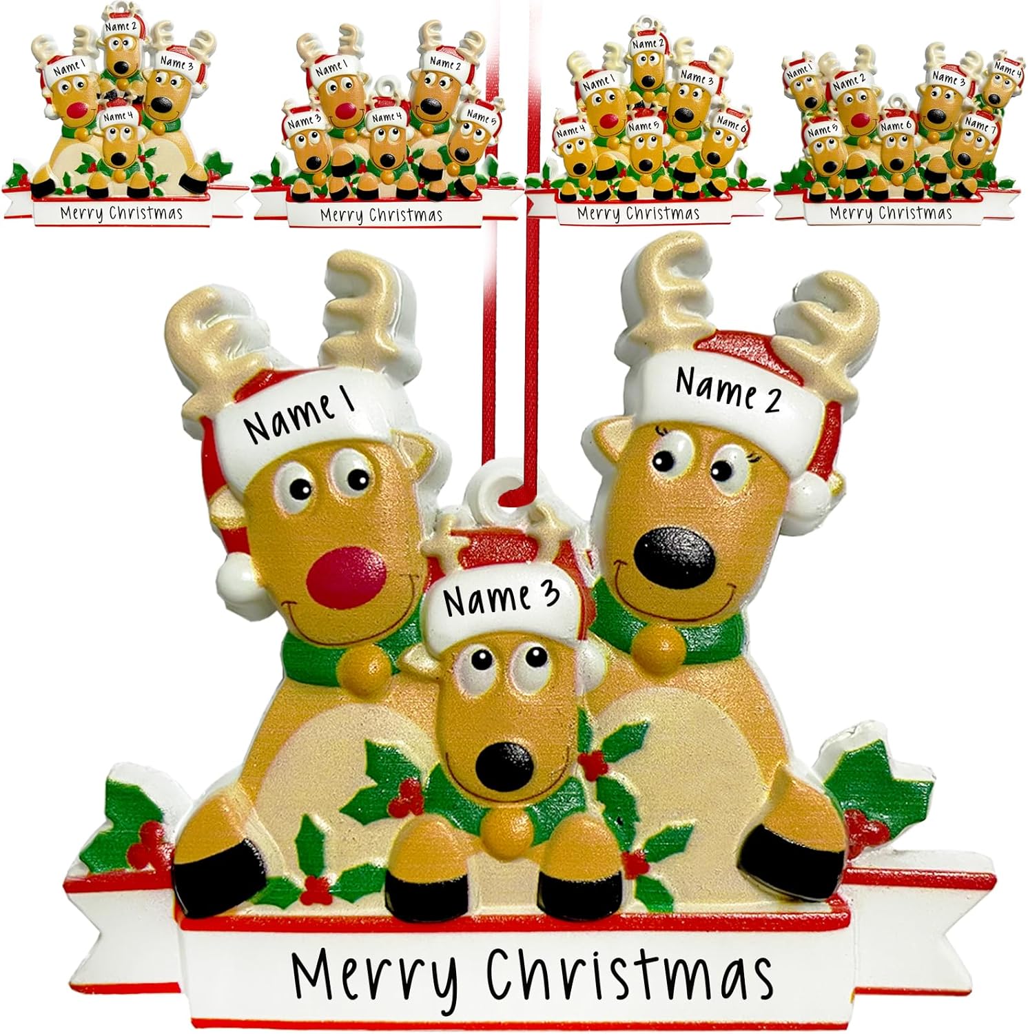 2025 Personalized Christmas Ornaments Family of 2/3/4/5/6/7/8,Custom Deer Christmas Ornaments Deorations with Names,Customized Xmas Ornament Tree Deorations,Personalized Xmas Ornament Gifts