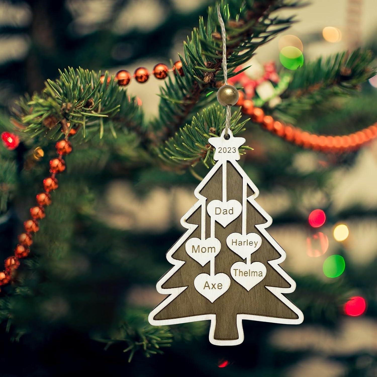 2025 Personalized Christmas Ornaments Family of 2/3/4/5/6/7/8,Custom Christmas Tree Ornaments Deorations with Names,Customized Xmas Ornament Tree Deorations,Personalized Wooden Ornament Gifts