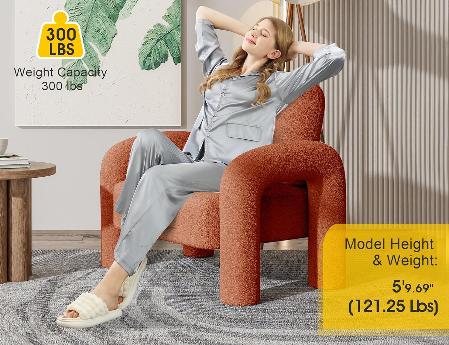 Modern Sherpa Accent Chair, Teddy Upholstered Arm Single Sofa, Cozy Fluffy Reading Chair for Living Room, Bedrooms, Corner (Orange)