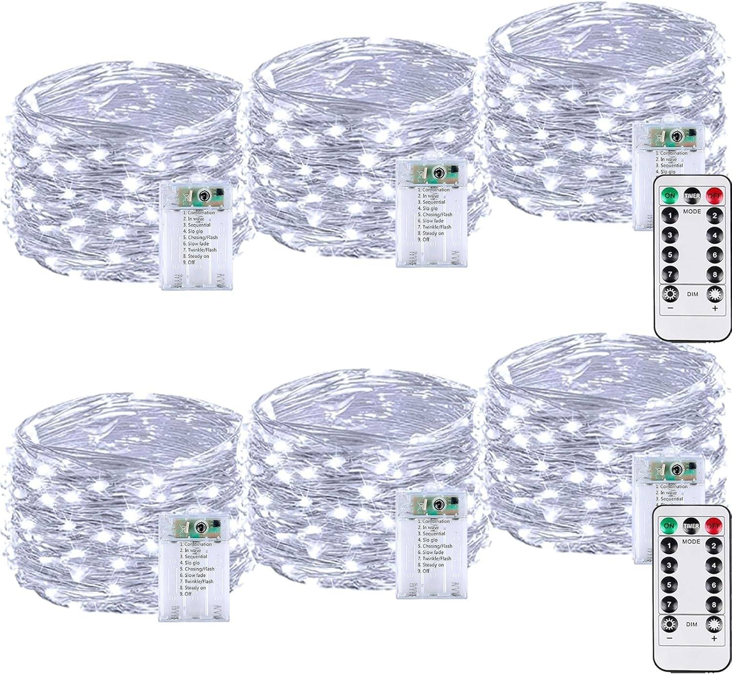 6 Pack 60LED Battery Operated Fairy Lights with Remote, 8 Modes LED String Lights with Timer, Dimmable, Memory Function, Waterproof Twinkle Fairy Lights for Outdoor Indoor Christmas Decor(Cool White)