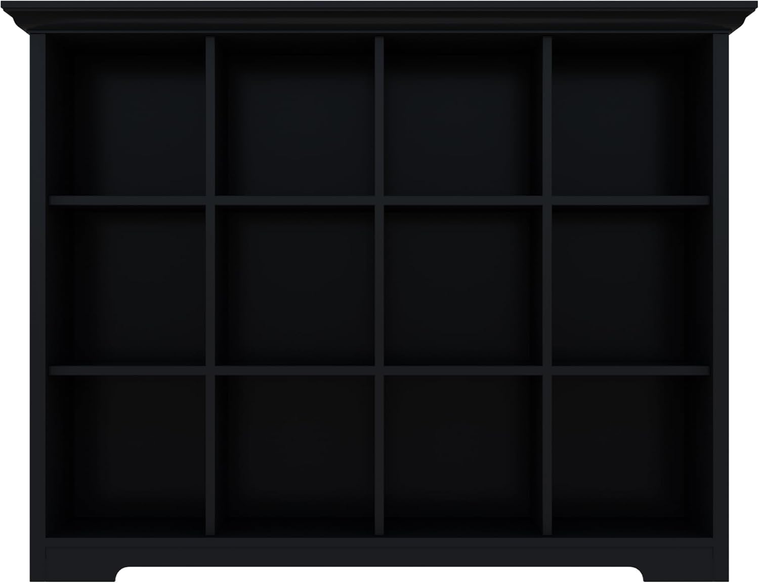 Cube Storage Bookcase with Base - Wooden 3 Tiers Floor Standing Open Shelf Cabinet for Home and Office, 12-Cube Lattice Bookshelf, Black