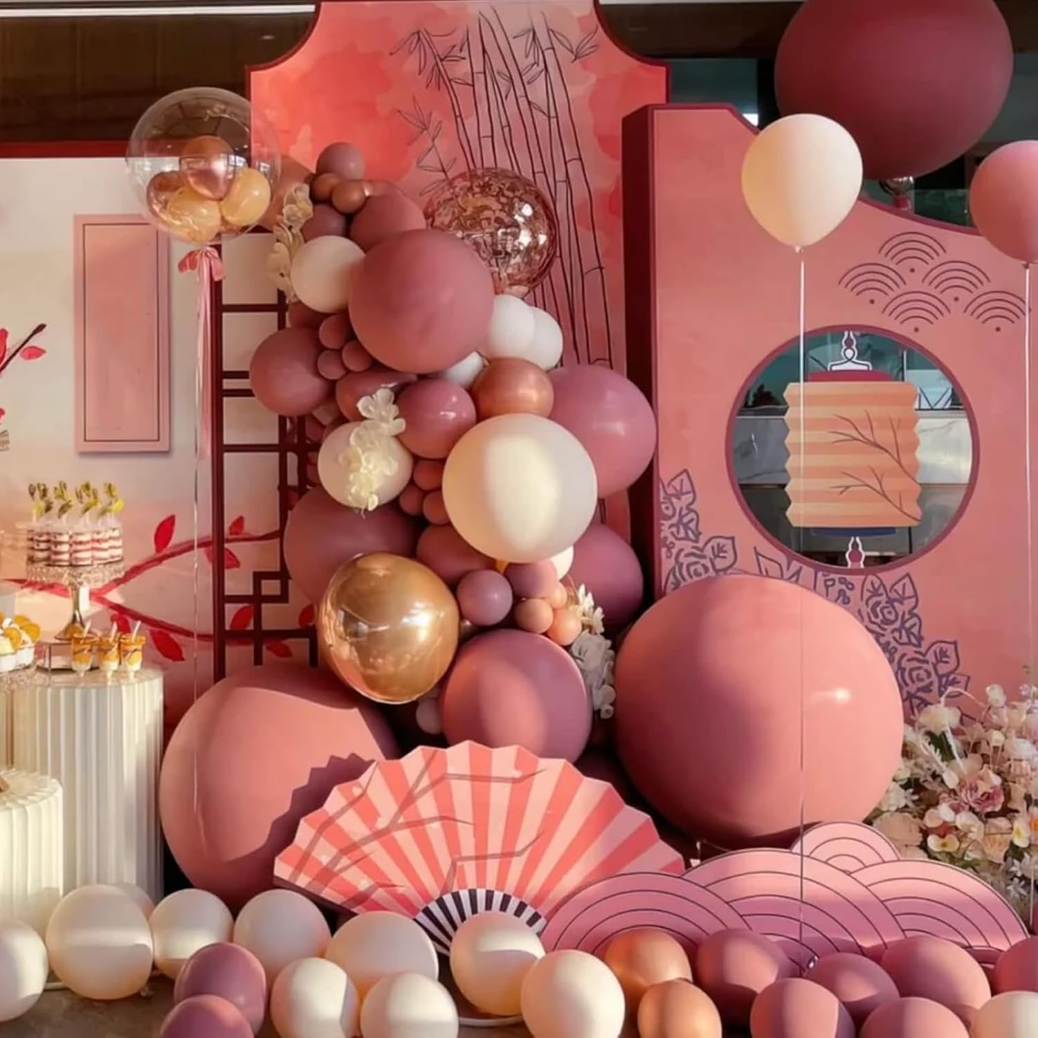 - Widely Applications: Let your imaginations collide, match other colors with our retro pink balloons, you can get a pretty unique balloon garland arch kit. So it widely used for varied occasions, such as pink birthday party decorations, graduation, gender reveal, baby shower, New Year, weddings, anniversary, halloween, thanksgiving day, christmas, valentine's day, mother's day, father's day, children's day etc