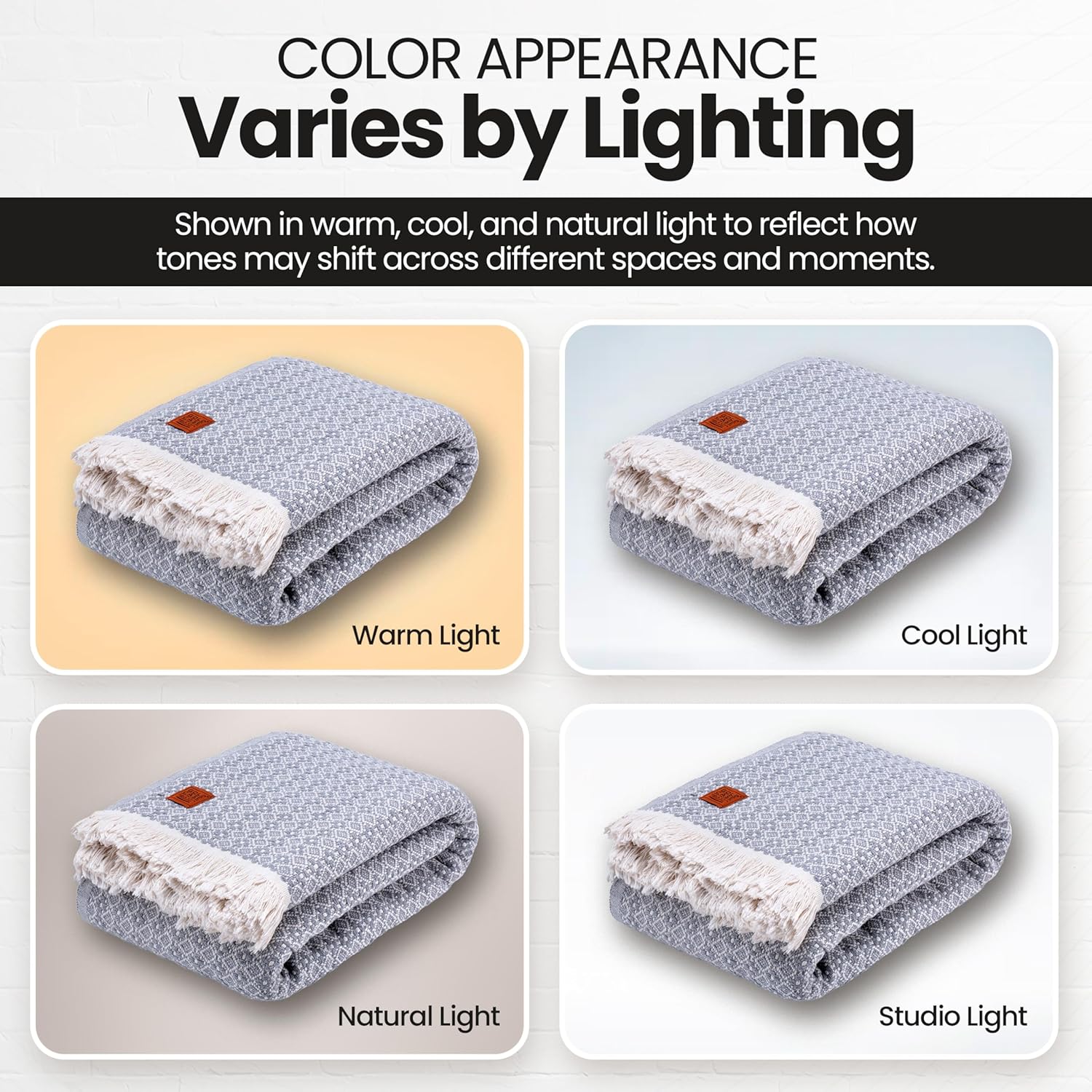 - LIGHTWEIGHT LAYERS FOR RELAXED MOMENTS: Woven from 100% recycled Turkish cotton, this breathable cotton blanket throw adds a soft, textured touch to your space; this bed throw blanket made for layering on your bed, or adding a laid-back look to your decor