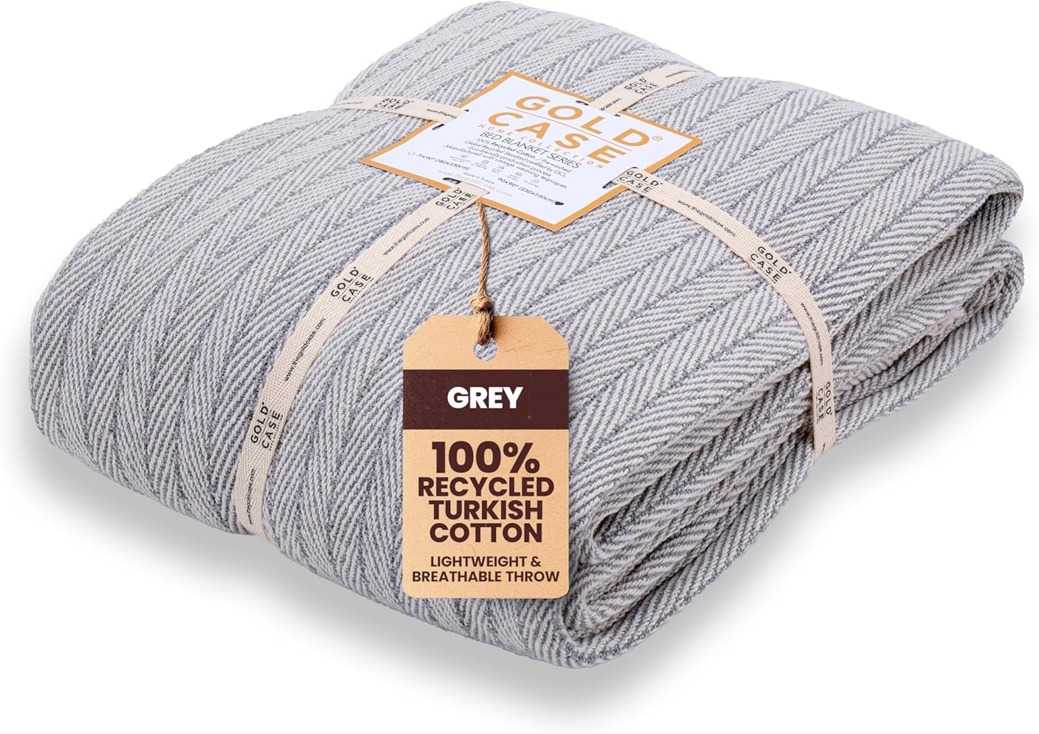 Gold Case Throw Blanket for Bed – 100% Recycled Turkish Cotton Bed Blanket – Decorative Throw Cotton Blankets for Living Room & Bedroom – Woven Twin Blankets - 71x90 - Grey