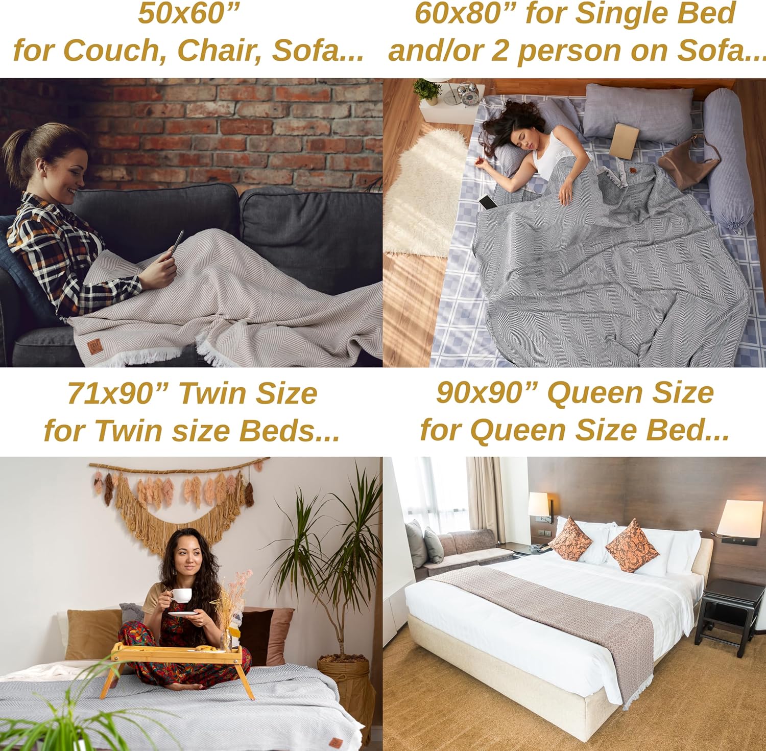 - CELEBRATE SUSTAINABLE STYLE: Made in Turkiye with recycled cotton, this couch throw blanket brings eco-conscious comfort to your home; the soft weave and fringe detail give this couch blanket a rustic, decorative touch that layers beautifully in any space