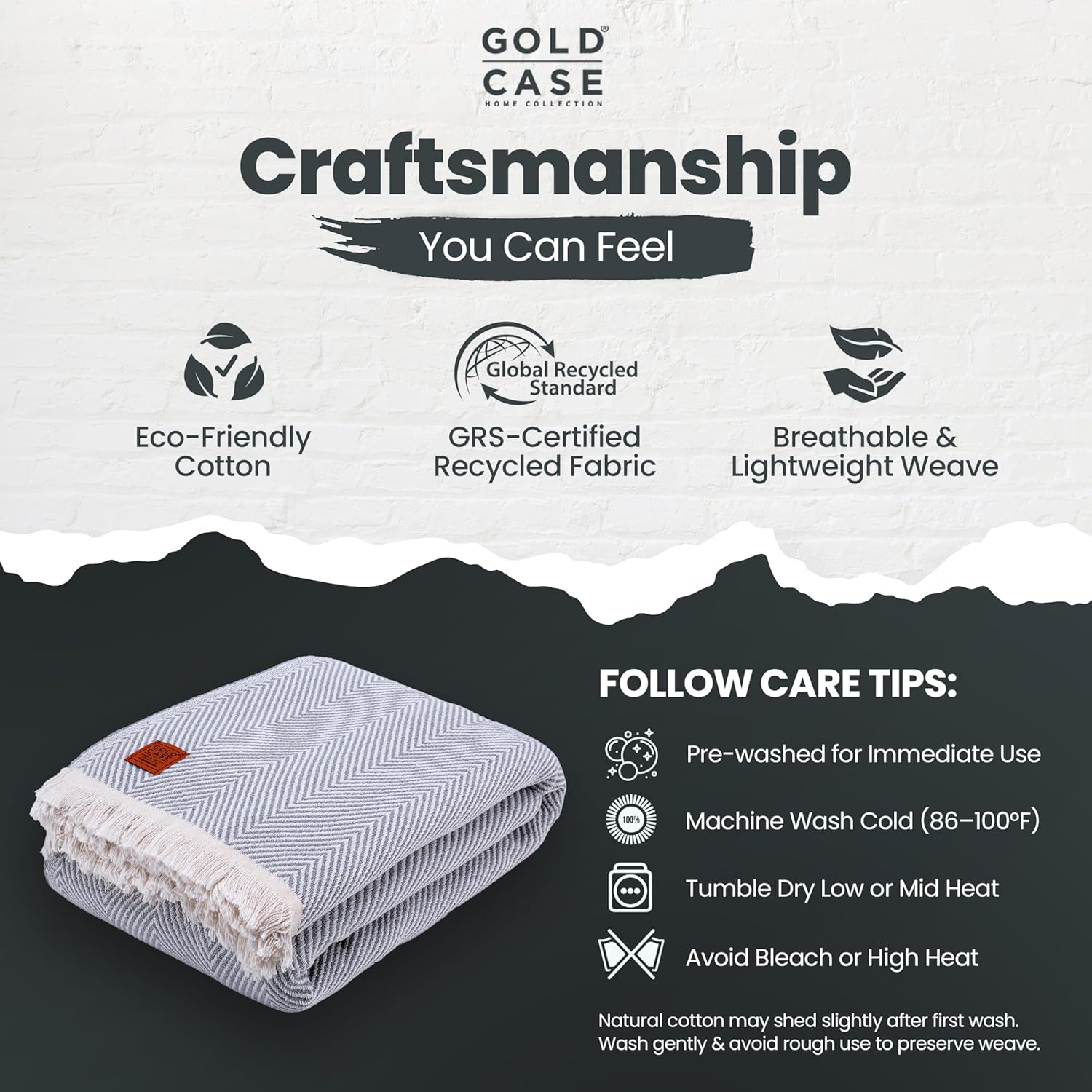 Gold Case Throw Blanket for Bed – 100% Recycled Turkish Cotton Bed Blanket – Decorative Throw Cotton Blankets for Living Room & Bedroom – Woven Twin Blankets - 71x90 - Elegant Grey