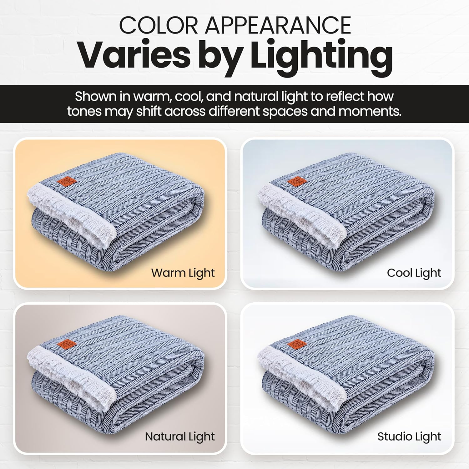 - CELEBRATE SUSTAINABLE STYLE: Made in Turkiye with recycled cotton, this cotton throw blanket brings eco-conscious comfort to your home; the soft weave and fringe detail give this woven blanket for bed a rustic, decorative touch that layers beautifully in any space