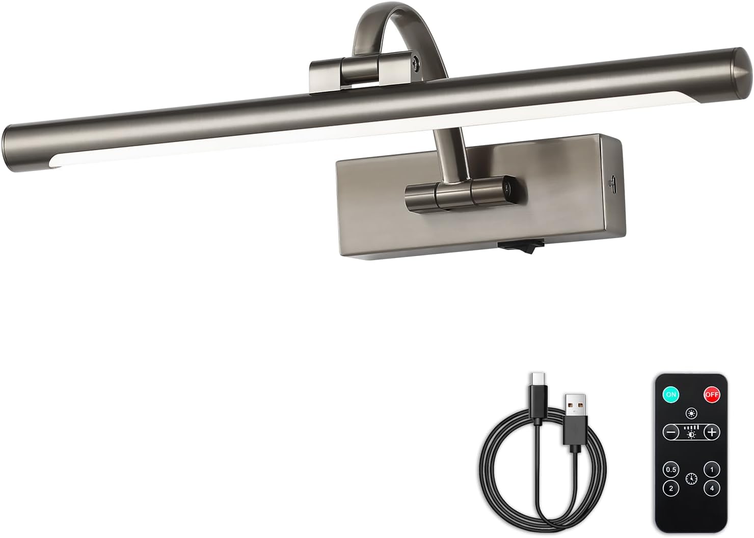 Battery Operated Picture Lights for Wall, Wireless Painting Lights Dimmable Artwork Lighting with Remote and Timer, Rechargeable Art Lights for Paintings-Brushed Grey 16'' inch Warm White