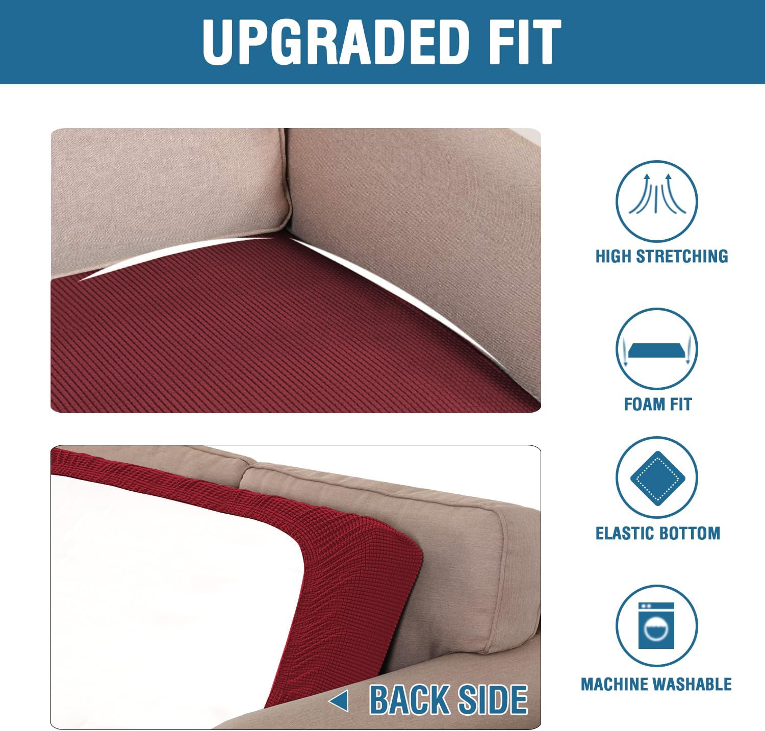 H.VERSAILTEX Super Stretch Individual Seat Cushion Covers Sofa Covers Couch Cushion Covers Slipcover Sets Thick Jacquard Textured Twill Fabric (1 Piece Loveseat Cushion Cover, Burgundy Red)