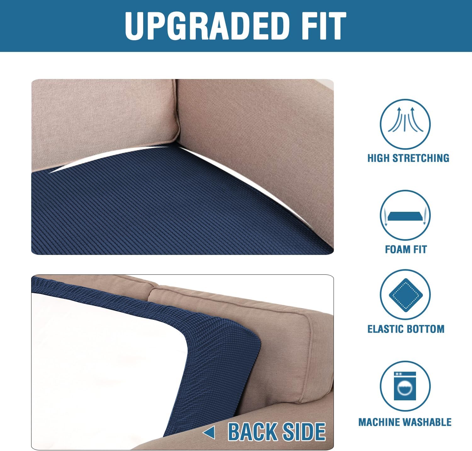- GREAT FIT: Set of 1. This innovated cushion slipcover is crafted from durable and soft high stretch knitted jacquard fabric. Chair Seat Cover(fit total sitting area between 35-40 inches). Feature one-size-fits-most, kindly measure before ordering. Suitable for both T cushion and Box cushion styles