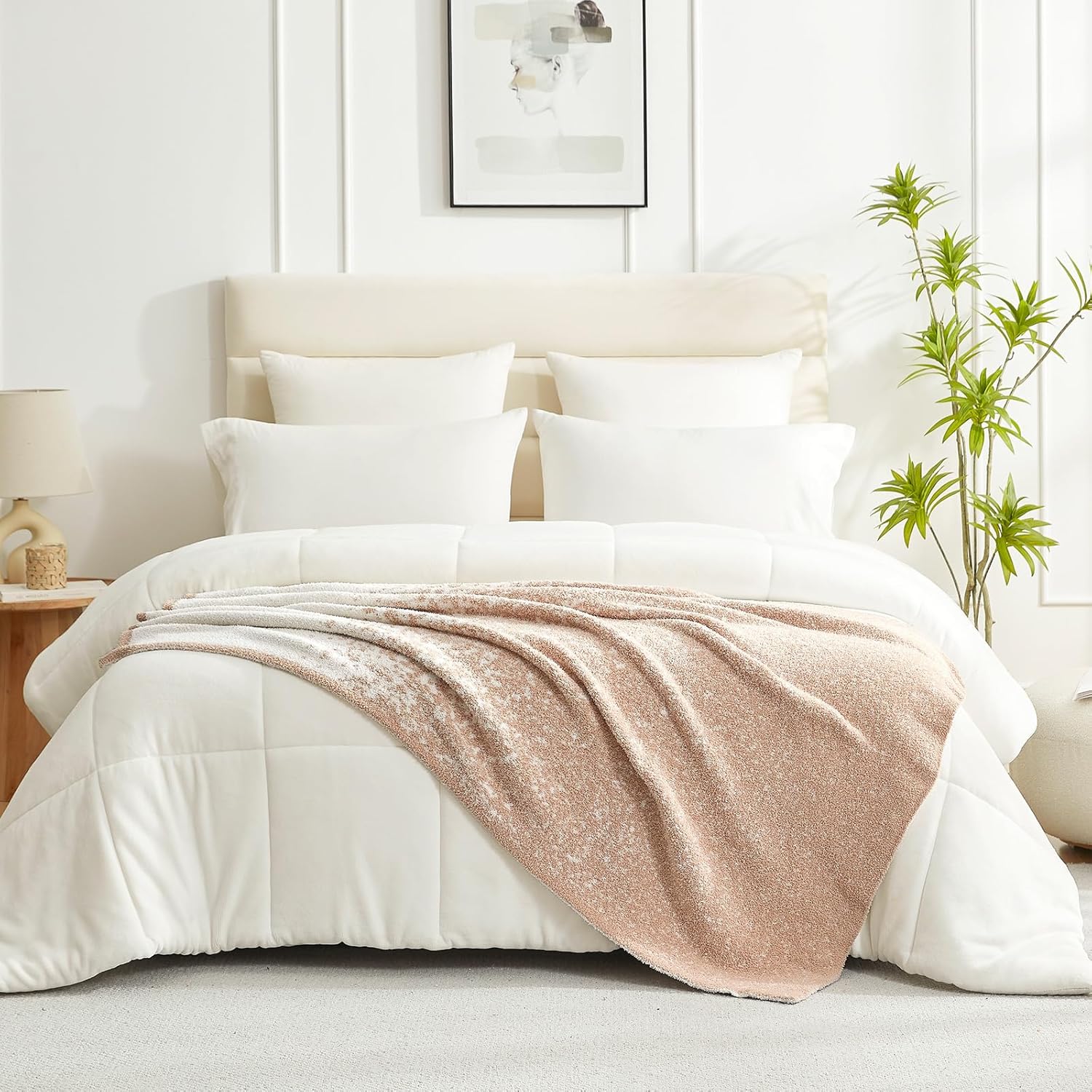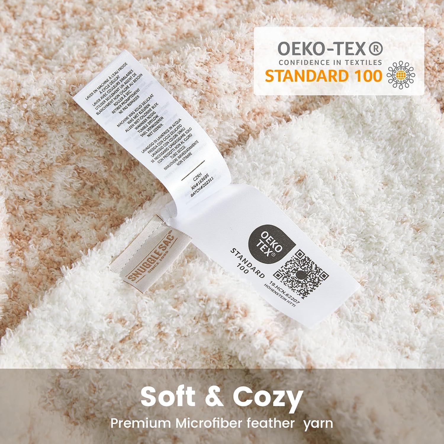 Snuggle Sac Buttery Beige Blanket Twin Size for Bed and Sofa, Reversible Super Soft Blankets Warm Cozy Knit Fuzzy Plush Blankets for Couch, Picnic, Ombre Beige, 60x80 inches