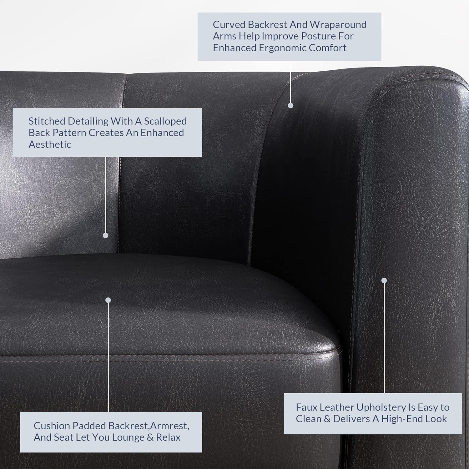 - [ERGONOMIC LOUNGE CHAIR] Enjoy comfortable seating with this ergonomically designed accent chair that includes a high-density soft cushion, generously padded and filled with foam. A curved backrest and wraparound arms offer added support.