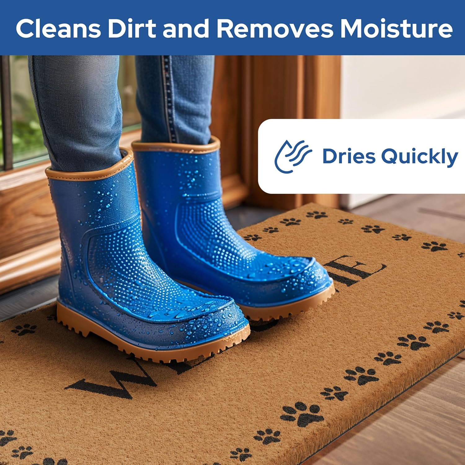 - Versatile - Our Paw Print Border welcome doormat outdoor entrances is not only perfect for patios, but also makes a great welcome mat for outdoor events or camping trips. Its durable construction is perfect for cleaning dirt and debris from shoes, and the all-weather coir fibers dry quickly. Use it to welcome guests to your home, cabin, or RV.