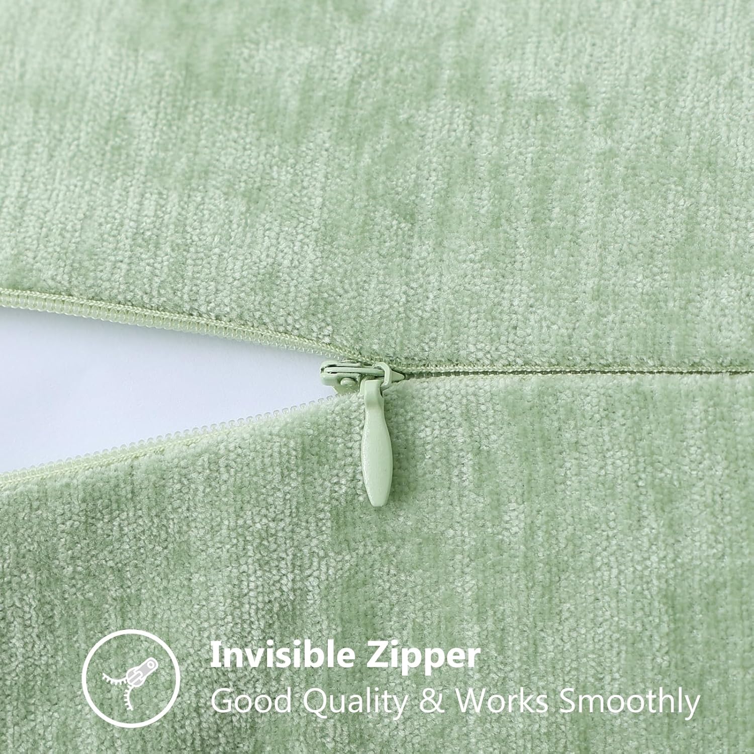 decorUhome Chenille Soft Throw Pillow Covers 16x16 Set of 2, Farmhouse Velvet Neutral Decorative Euro Pillow Covers with Stitched Edge for Couch Sofa Bed Home Decor, Sage Green
