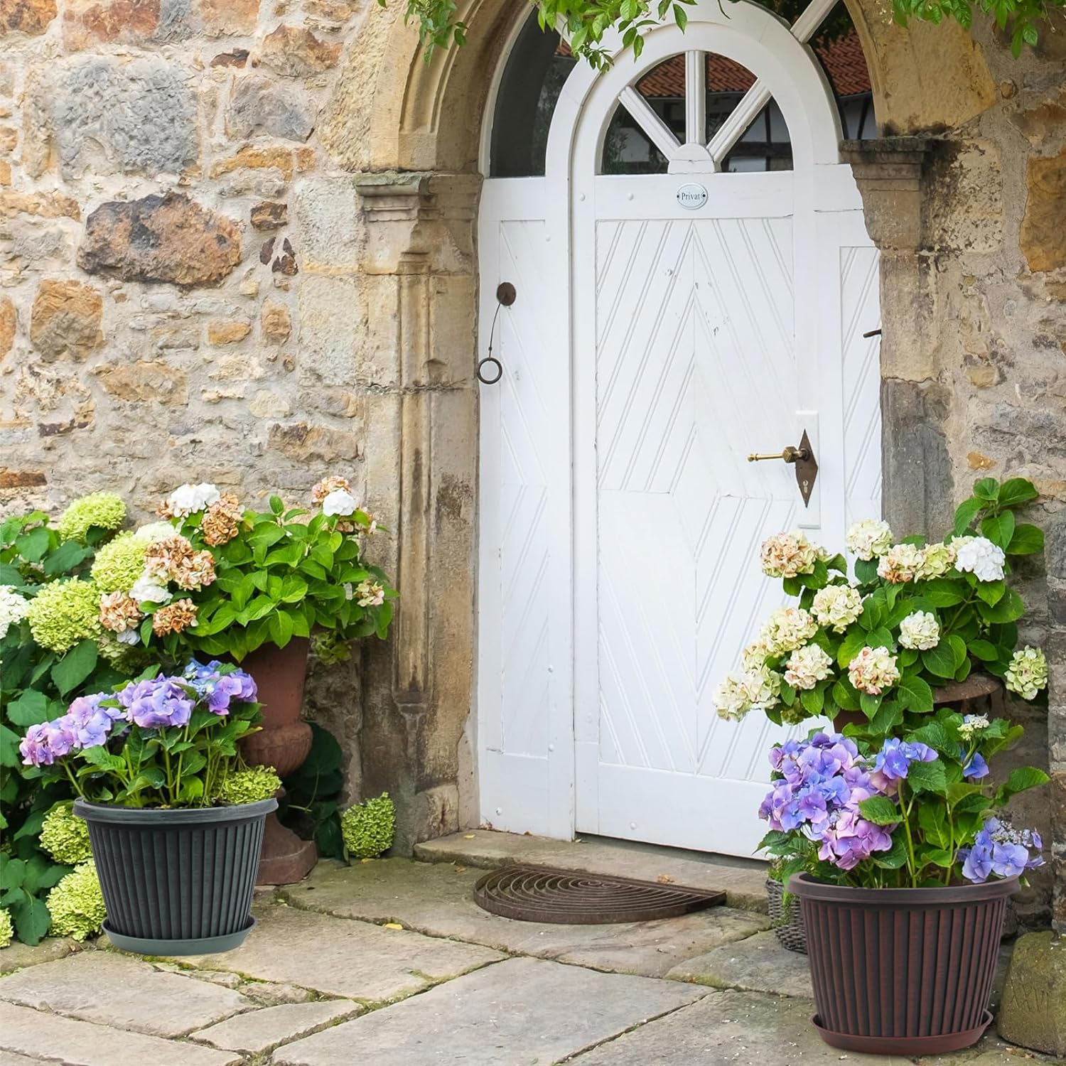 - 【Drainage Holes & Saucer】Each 12 inch planter pot has four drain hole at the bottom to allow water drain and air flow, prevent the roots fro getting water logged. The included saucers works great for capturing the overflow water soil spillage.