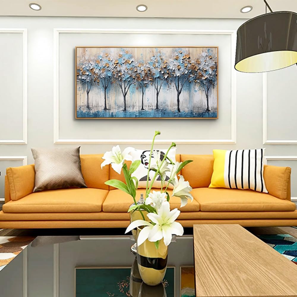 Hyidecorart Vintage Trees Abstract Wall Paintings Large Canvas Art for Living Room Bedroom - Wood Framed Modern Office Pictures Stretched and Ready to Hang Home Decoration