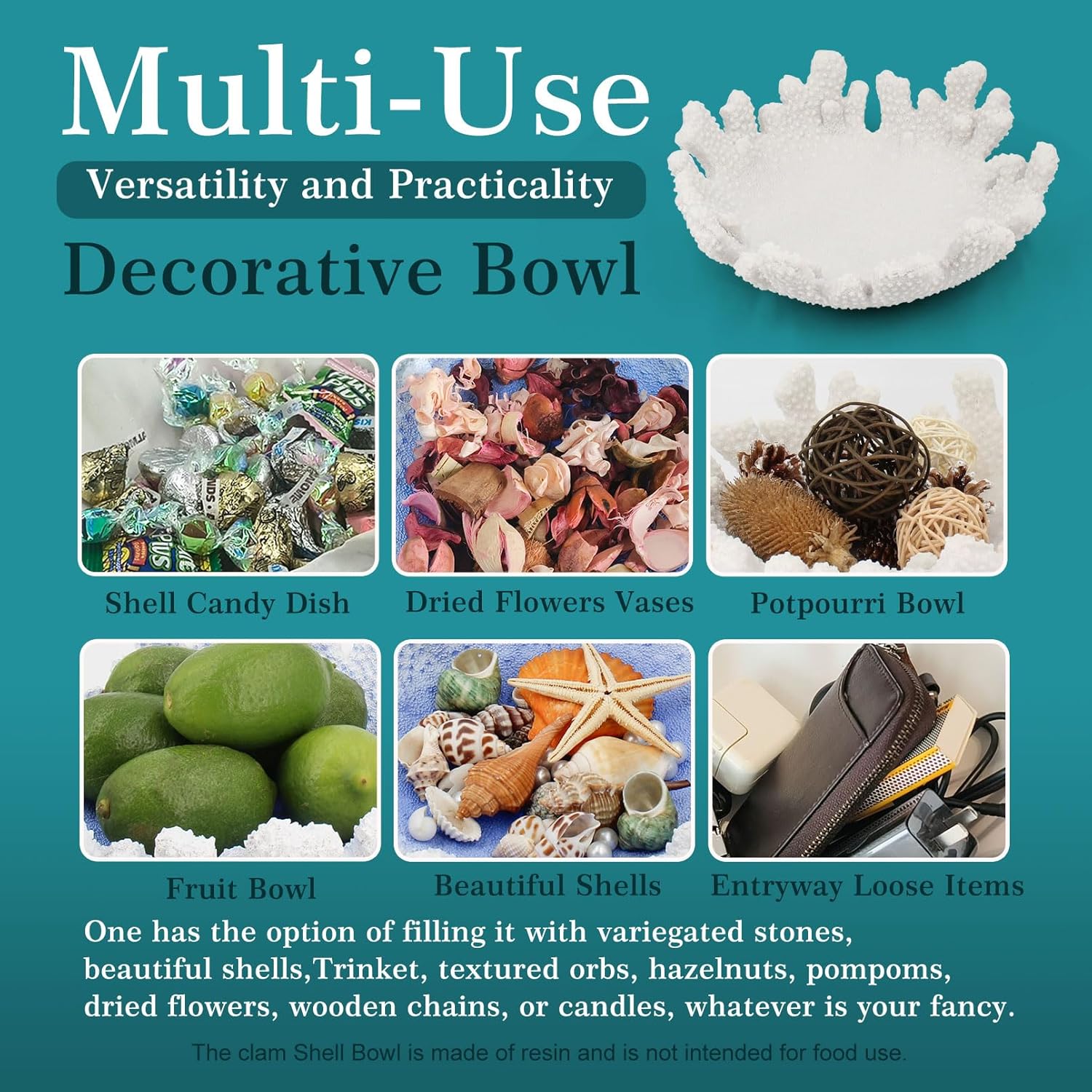 - [Versatile Decorative Accent Plate] This white decorative plate tray combines versatility and practicality in one. The medium coral textured bowl can serve as fruit basket, key bowl, potpourri bowl, jewelry bowl, or simply a stunning decorative piece on a coffee table, sideboard, or window ledge. Showcase its beauty to guests and visitors alike. A great addition to coastal mantel decor and beach themed room decor