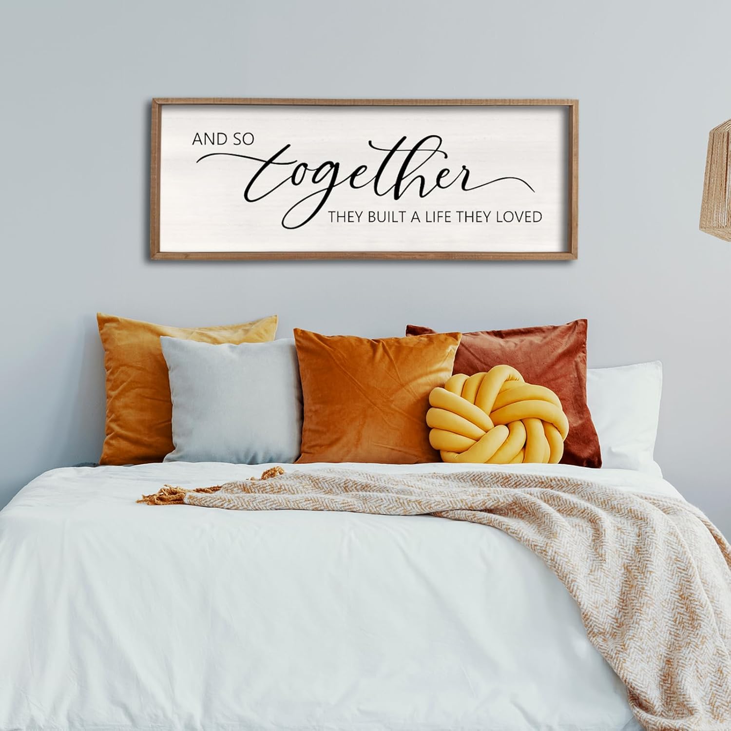 And So Together They Built A Life They Loved Sign 40”X15” Master Bedroom Above Bed Wall Decor Large Framed Wood Farmhouse Sign for Over Bed Bedside Wall Art for Love Sign Decor (Wood)