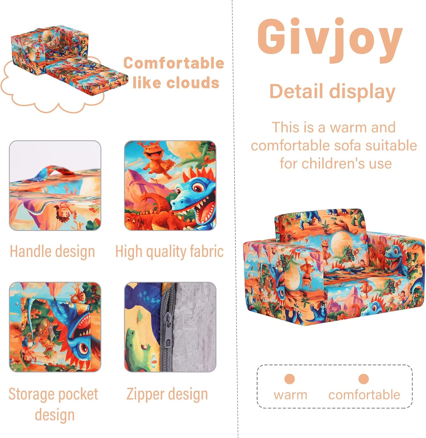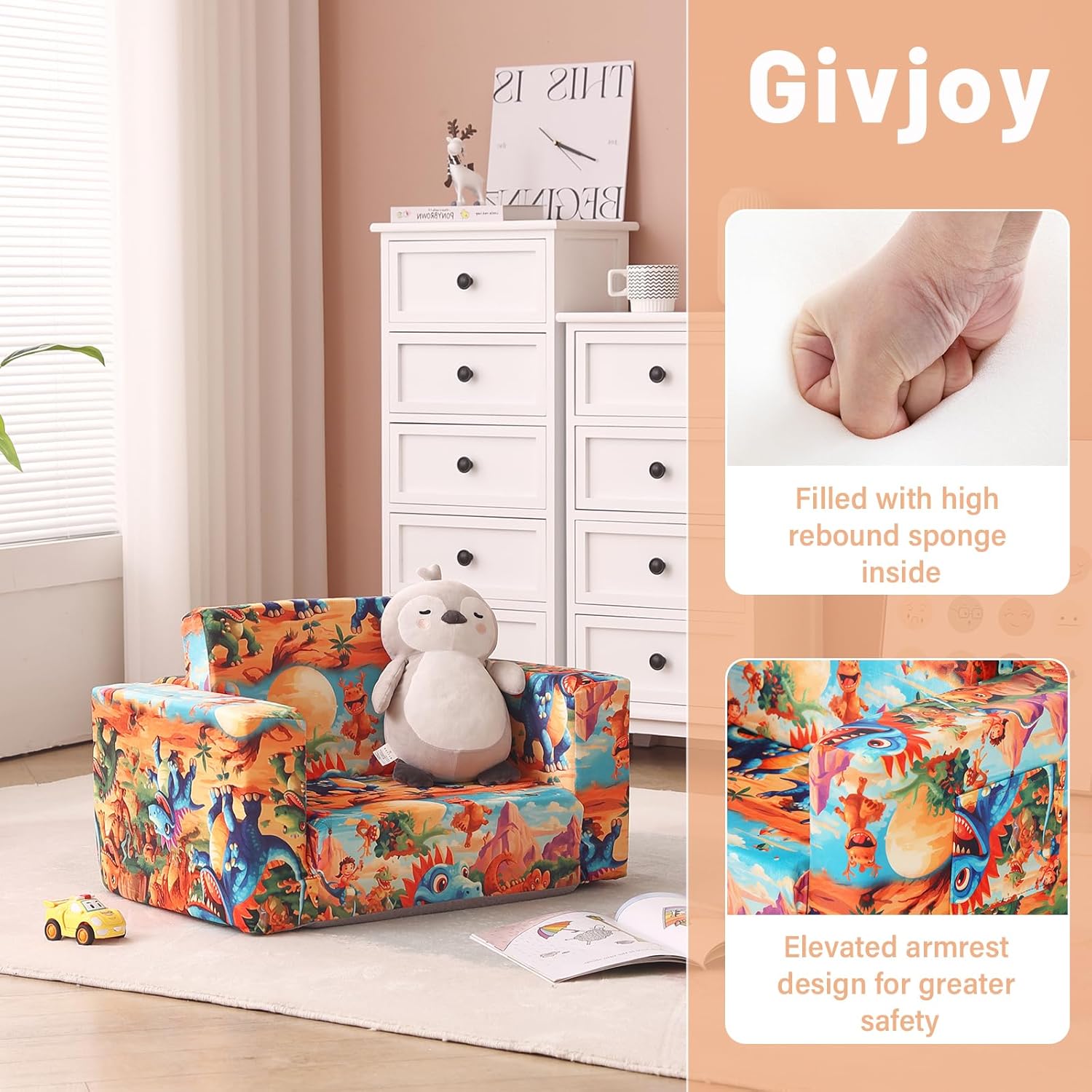 - 【Multifunctional 2-in-1 Design Unique Present for 18 months+ Boys and Girls】The 2-in-1 children's sofa couch is a wonderful present for all kids & toddlers on Birthdays, Christmas, or other occasions! Your child will find this small kids' couch a perfect spot for relaxing, reading, playing, or enjoying their favorite TV shows. Meanwhile, with both modern design and fashionable colors, this small couch can fit any room and add great vitality to your house.