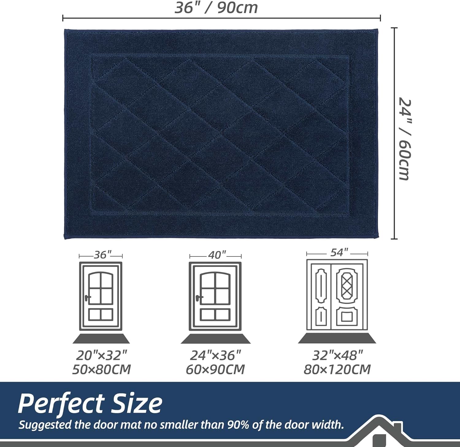 BEQHAUSE Dirt Trapper Door Mat 24" x 36", Doormat Non-Slip Entryway Rugs Washable, Dog Door Mat Stain Resistant and Absorbent Welcome Floor Mat for Front Back Door, Muddy Wet Shoes & Paws, Navy Blue