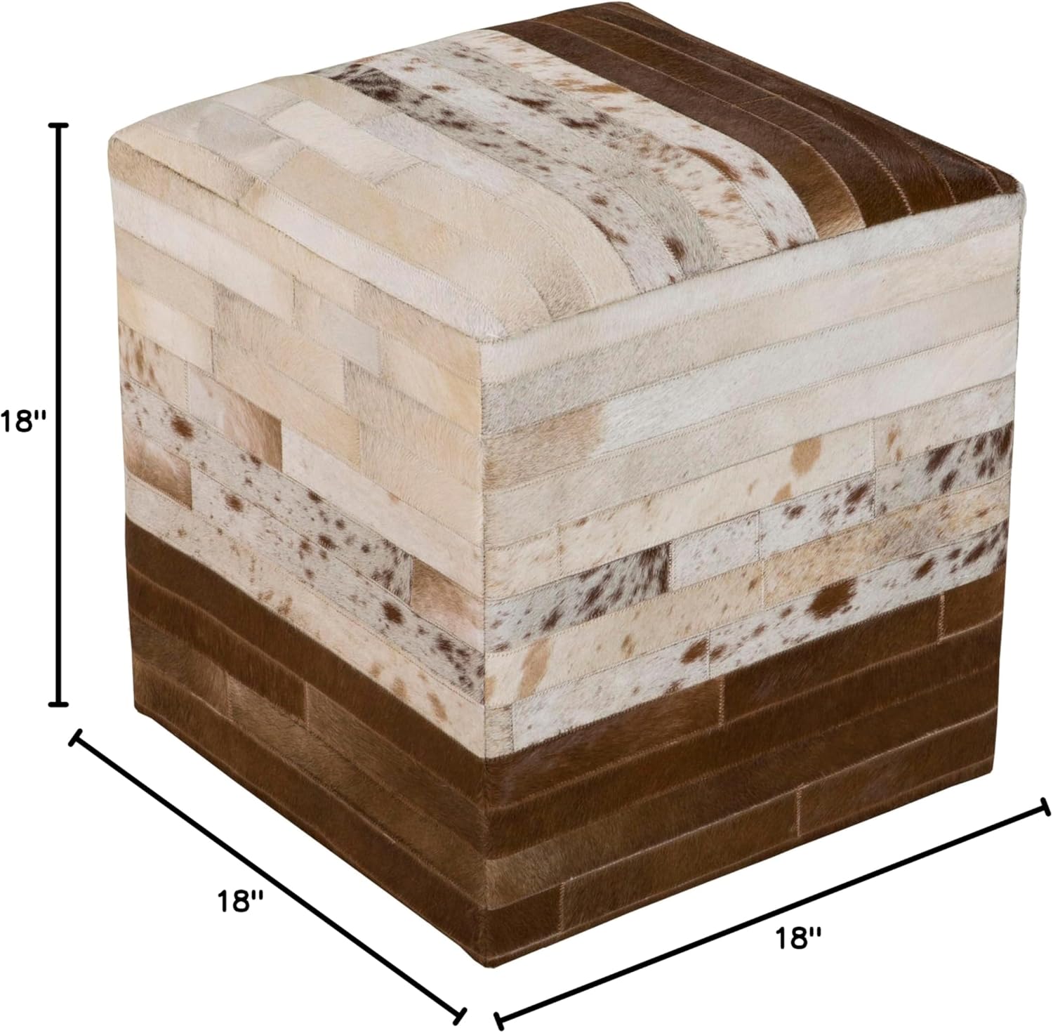 - 【PRODUCT SPECIFICATIONS】Colors: Cream, Dark Brown, Camel | Dimensions: 18"H x 18"W x 18"D | Style: Hide Leather and Fur | Shape: Cube | Construction: Leather
