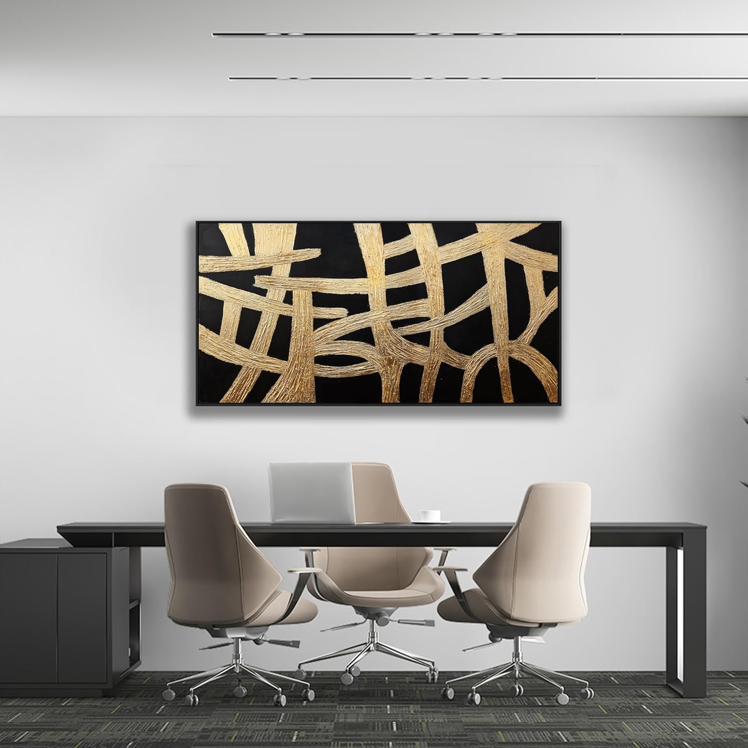 Abstract Canvas Wall Art Modern Artwork Canvas Prints Framed Canvas Picture Contemporary Wall Art Black And Gold Lines Texture Artwork Bedroom Living Room Office Decoration Ready To Hang 24x48