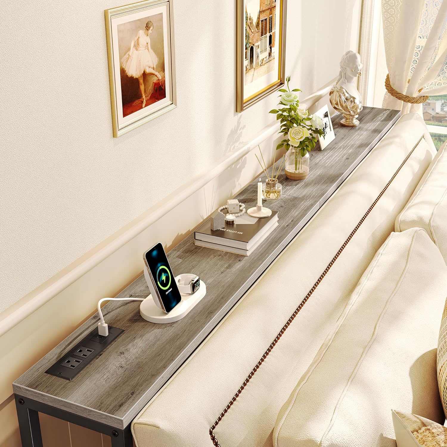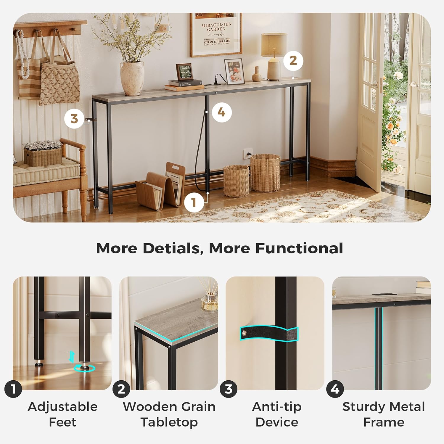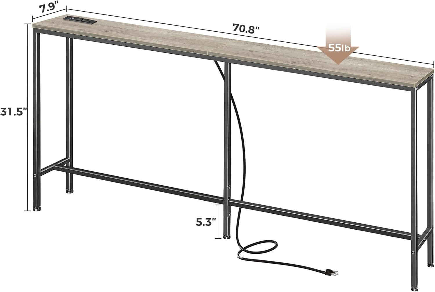 - [Welcome Power Outlets]: Invite this narrow console table to inspire your life! 2 outlets, 1 USB Port and 1 Type-C port are totally enough for your charging needs. Lamps, phones, iPad, fans, even decorative light strings are all covered