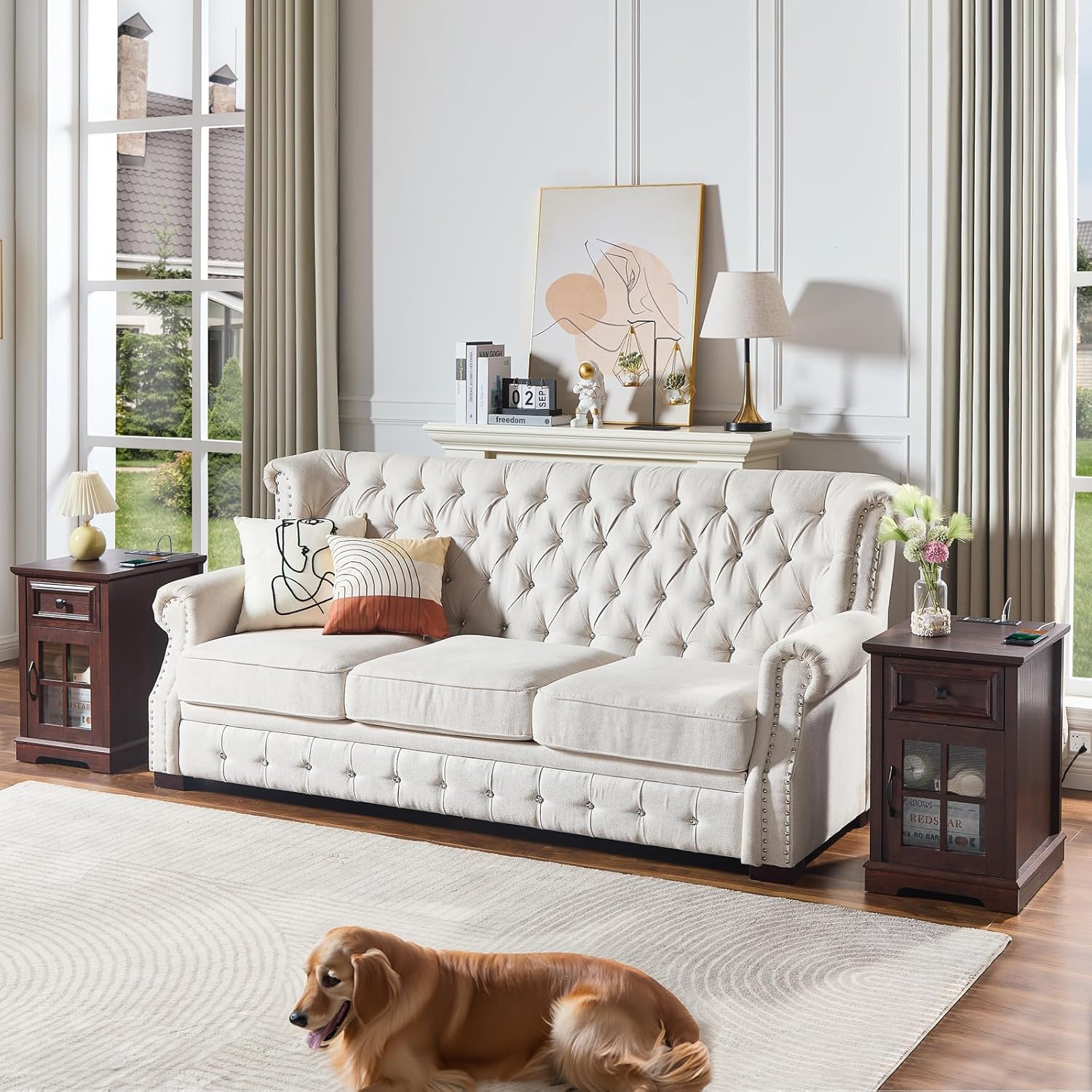 - 🔋【Side Table with Charging Station】Low battery? Don't worry. This end table comes with 2 AC outlets, 2 USB ports and a 6.56ft power cord for your charging needs. You can easily charge mobile phones and other devices as you need. Faster charging efficiency, stabler charging and no damage to your devices!