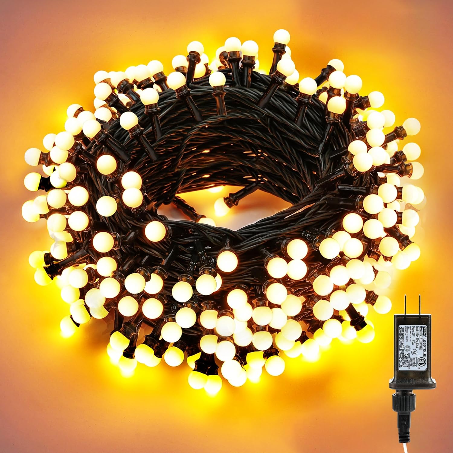 - End-to-End Connectable: Upgraded adapter string lights allowing end-to-end linkable up to 2 sets, total 400 LED 132ft, can extend to get your desire decoration needs and release you from worrying about not enough socket issues.