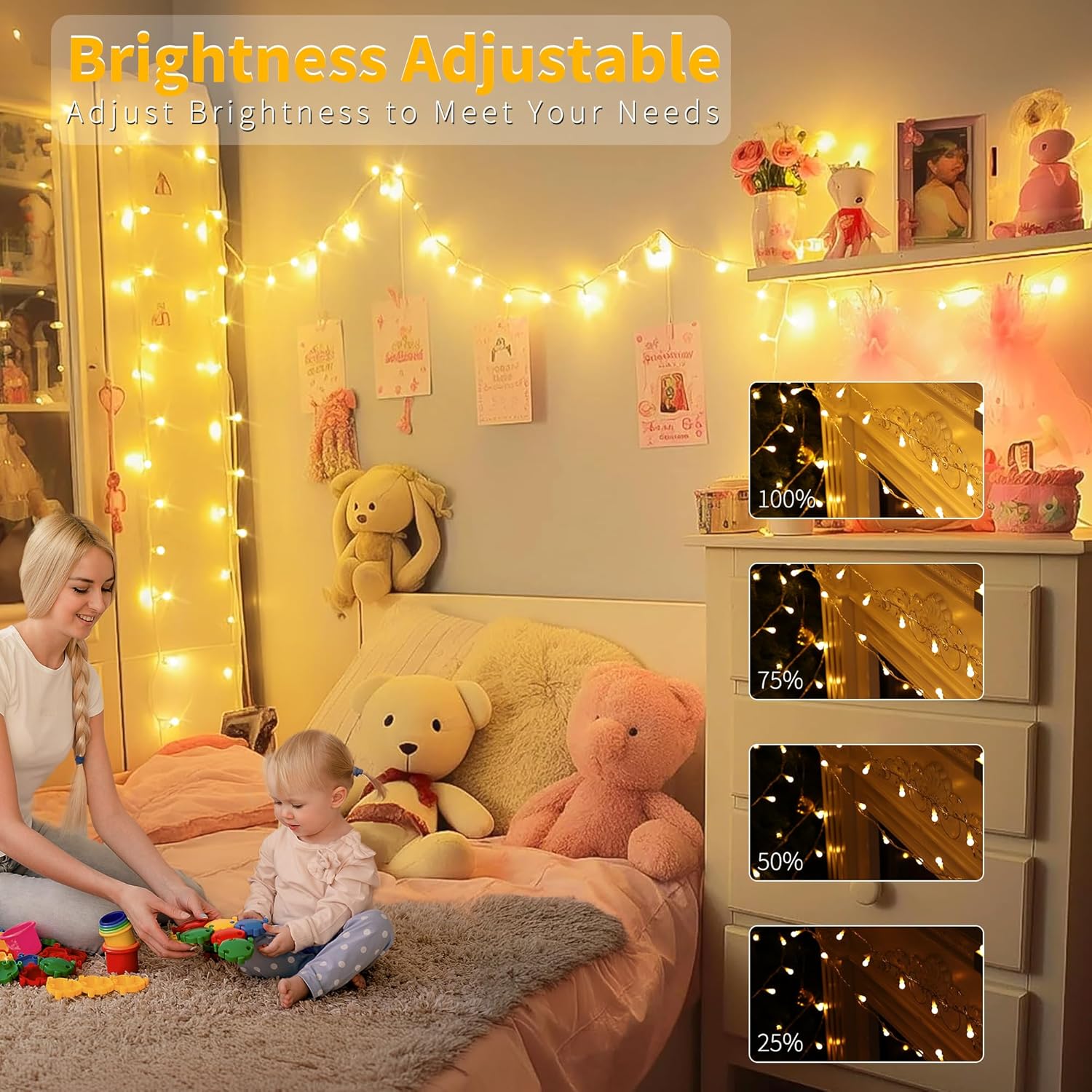- Wide Application: These christmas lights, ETL certification, can be used for indoor or outdoor lighting decor, you can hang the warm string lights wherever you want to decorate, widely used for Christmas decor, holiday decor, wedding decor, graduation season decor and daily decor. Ideal for ambience mood decoration in your bedroom, kid's room, girl's bedroom, living room, balcony, garden, patio, camping, gazebos, tents, fences, trees and bushes, awning, hotel, etc.