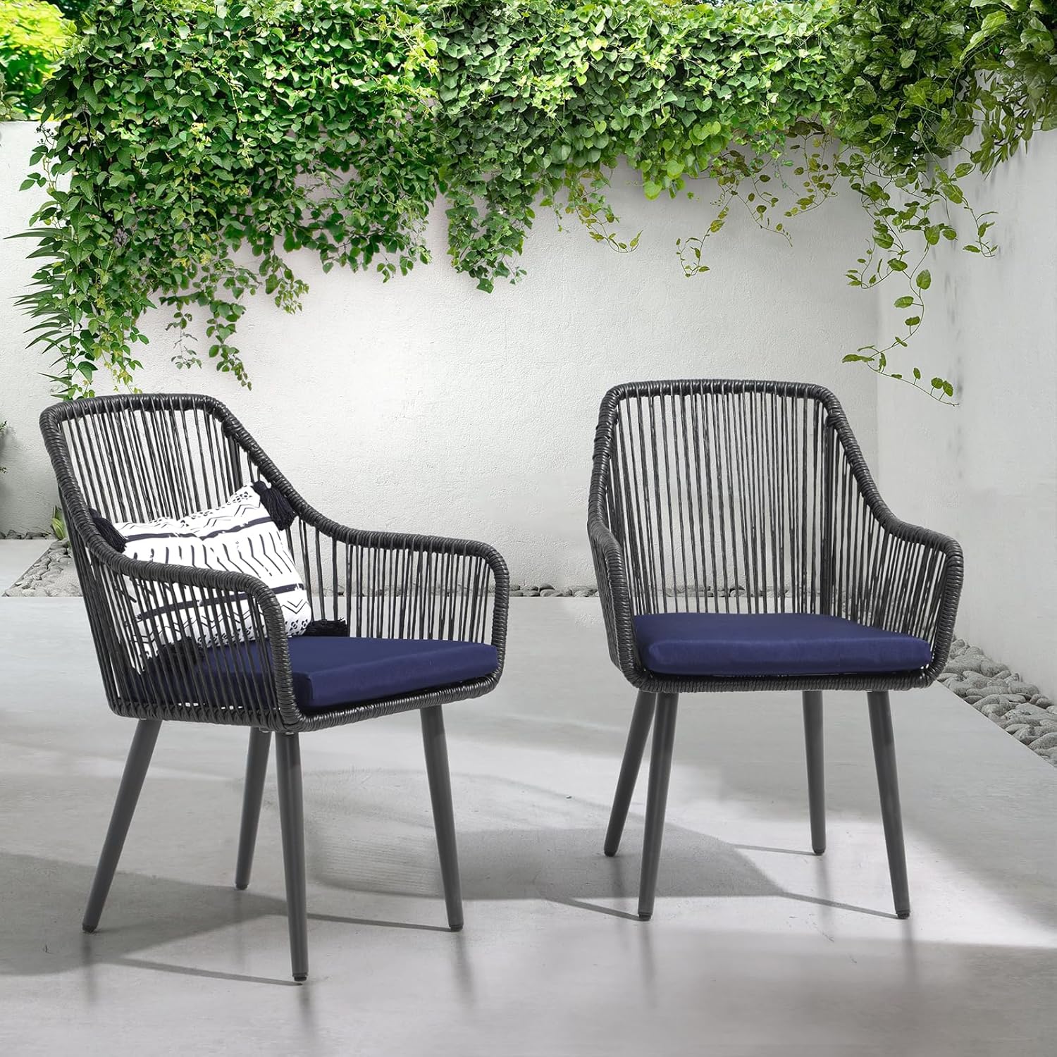Patiorama Outdoor Dining Chairs, Patio Dining Chair Set of 4, All-Weather Woven Rope Rattan Chairs, Outdoor Dining Wicker Chair with Armrests for Indoor Balcony Pool Backyard(Blue)