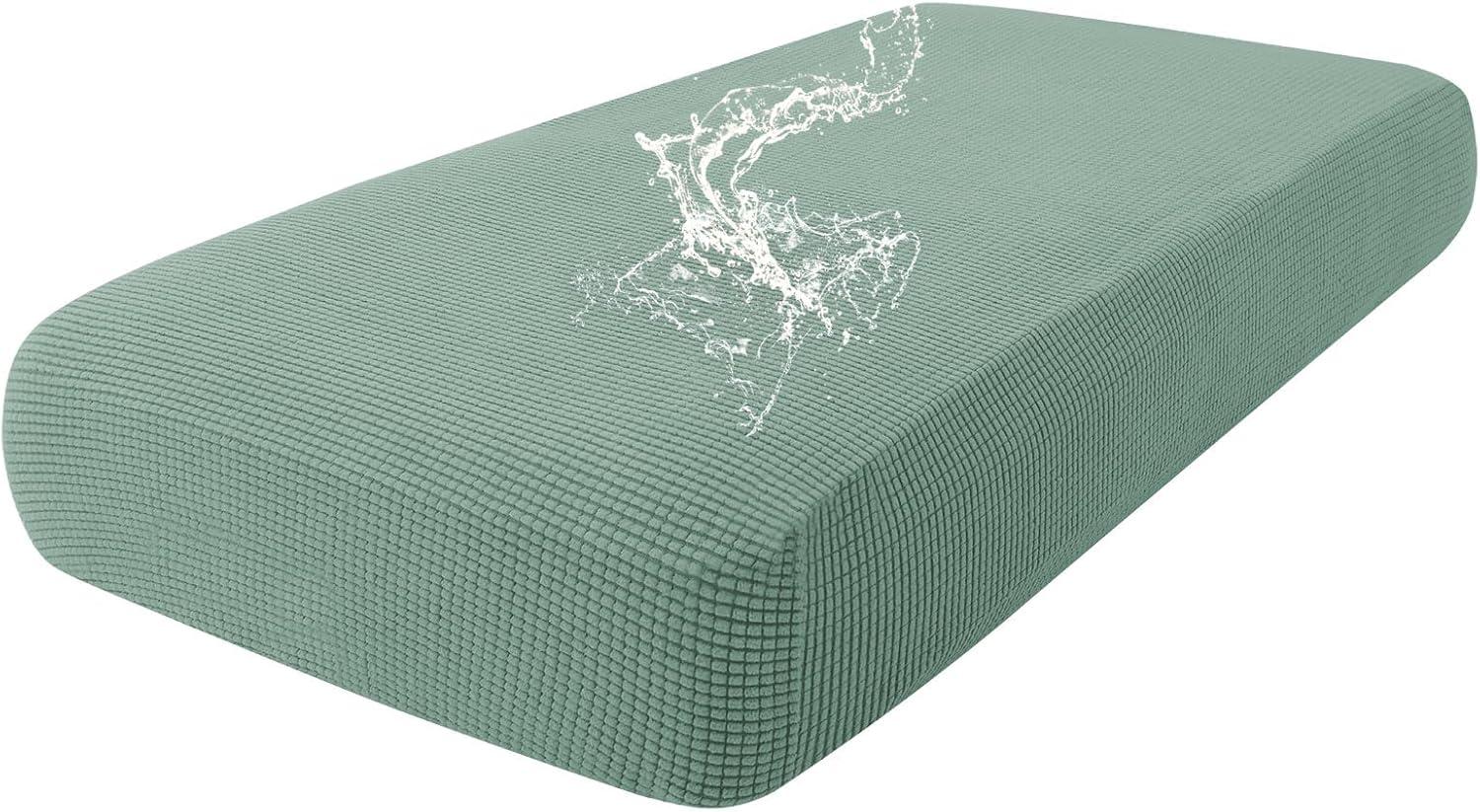 hyha Waterproof Couch Cushion Covers for Pets, Non Slip Sofa Seat Cover for Dogs Washable, Soft Thick Stretch Jacquard Fabric, Sofa Slipcovers with Elastic Bottom (1 Piece for Medium, Green)