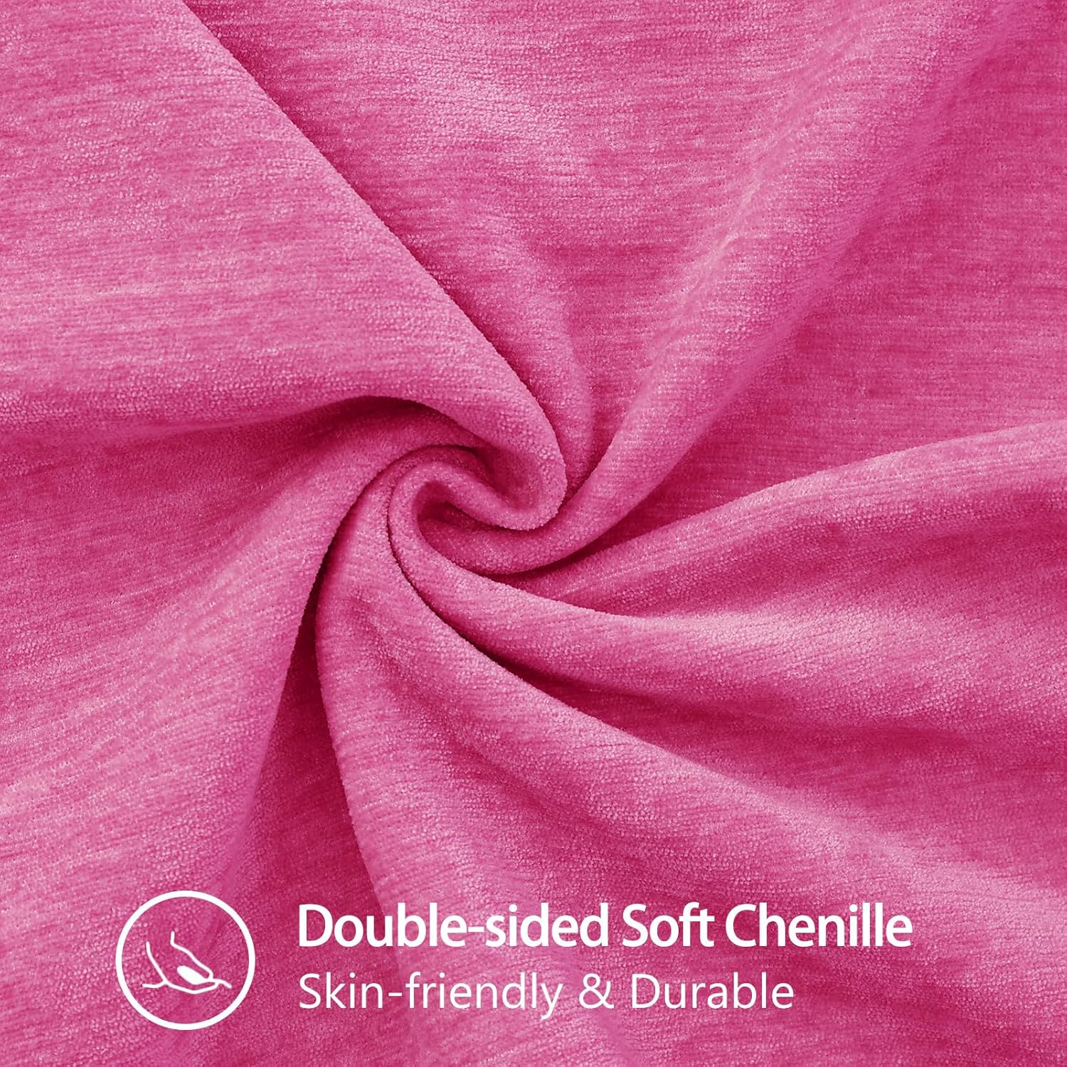 decorUhome Chenille Soft Throw Pillow Covers 20x20 Set of 2, Farmhouse Velvet Neutral Decorative Euro Pillow Covers with Stitched Edge for Couch Sofa Bed Home Decor, Hot Pink