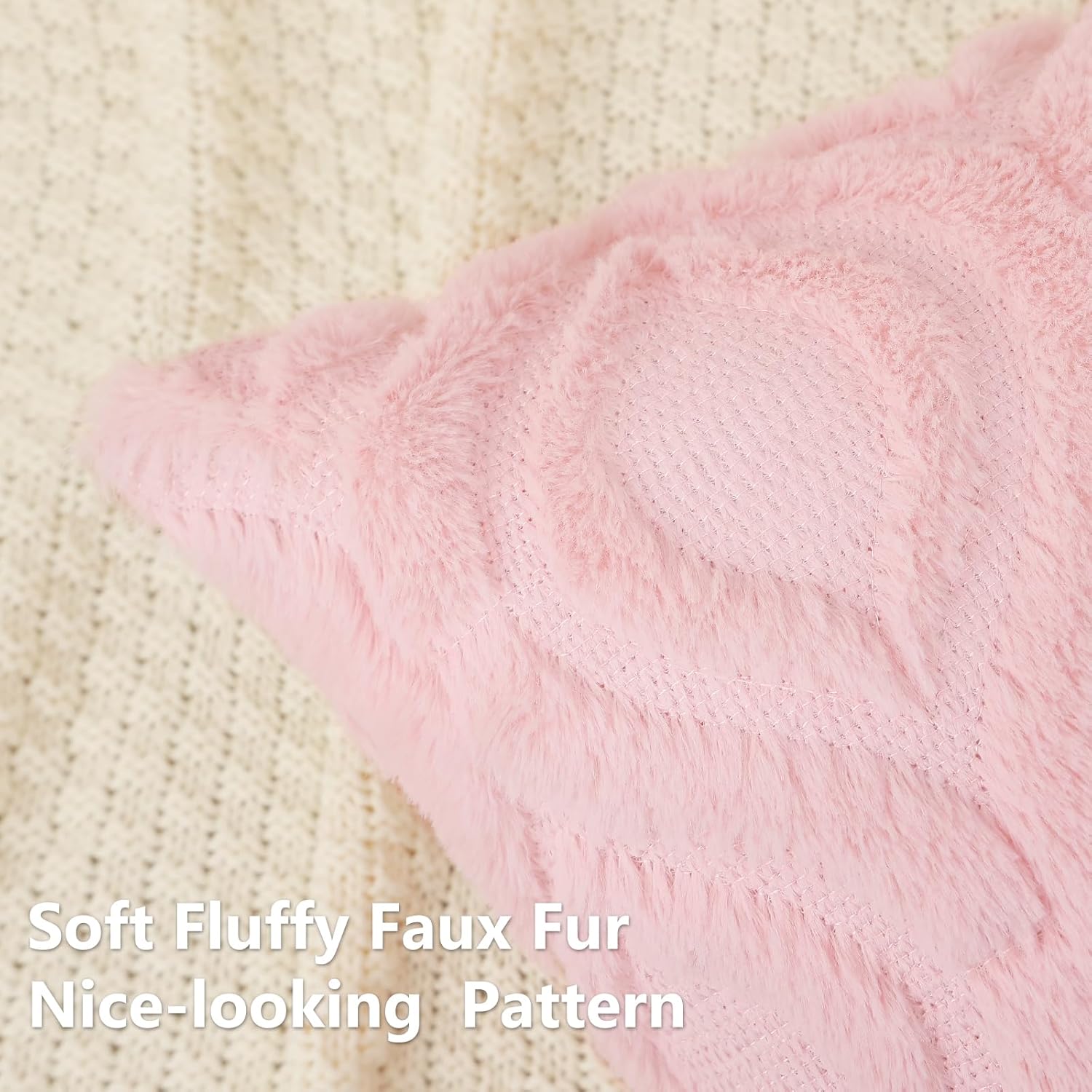 decorUhome Throw Pillow Covers 24x24 Inch Set of 2, Soft Plush Decorative Faux Fur Light Pink Solid Couch Pillow Covers, Accent Farmhouse Neutral Square Euro Pillow Cases for Sofa Bed Living Room