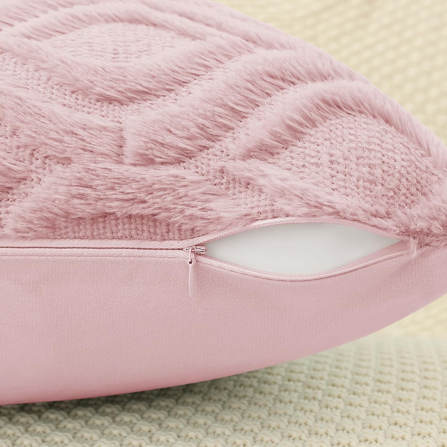 decorUhome Throw Pillow Covers 18x18 Inch Set of 2, Soft Plush Decorative Faux Fur Light Pink Solid Couch Pillow Covers, Accent Farmhouse Neutral Square Euro Pillow Cases for Sofa Bed Living Room
