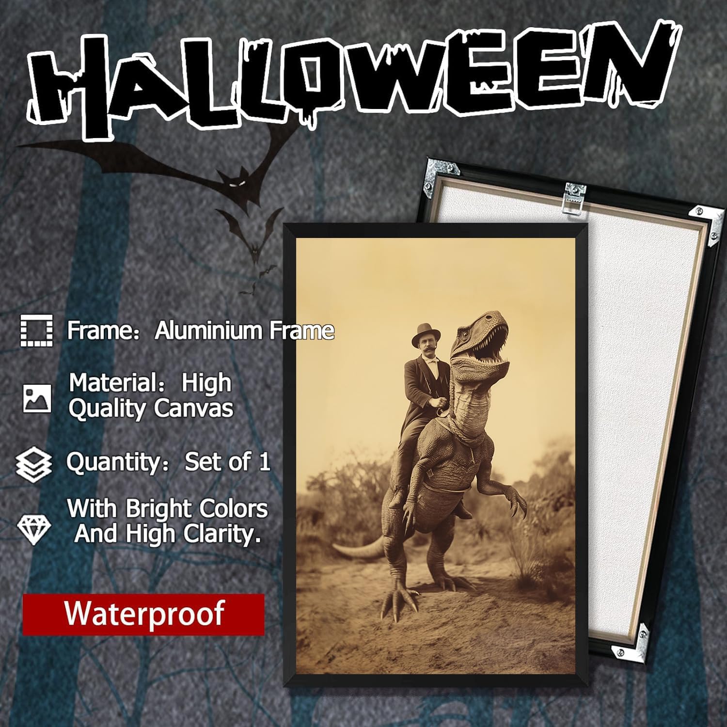 - Gothic Home Decor,A perfect Christmas presents,All Saints' Day and New Year gifts for your relatives,son and Male friend. High definition canvas poster depicting dinosaurs and men. It Gives a strong visual impact.
