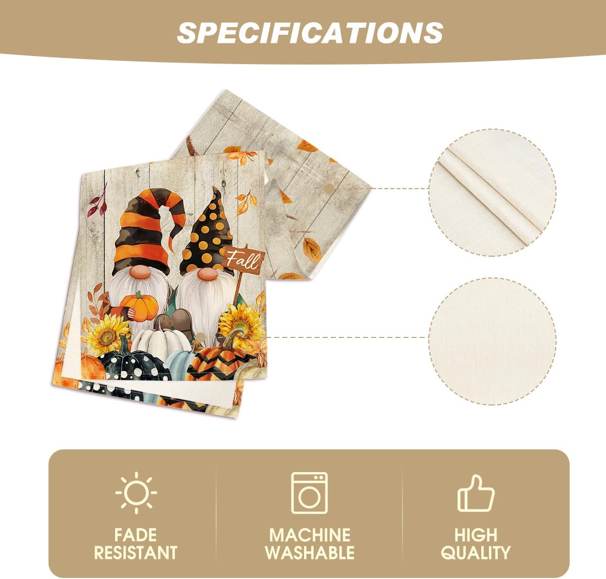Artoid Mode Wood Gnomes Pumpkins Sunflower Maple Leaves Fall Table Runner, Kitchen Dining Table Decoration for Home Party Decor 13 x 90 Inch