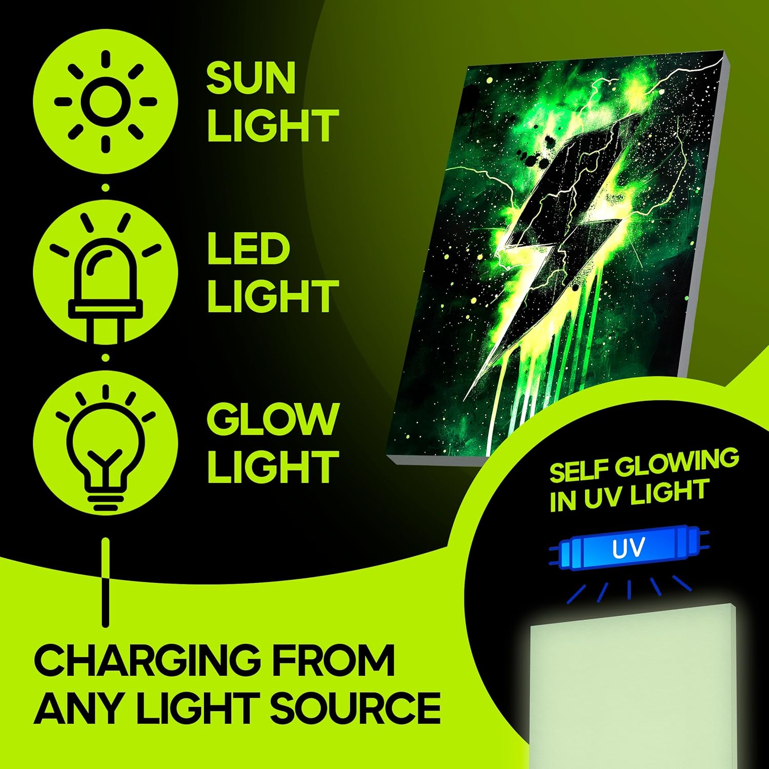 - Ready to Glow with Your Paint – Use outdoors or under studio light to charge the canvas surface and create luminous masterpieces that enchant in darkness.
