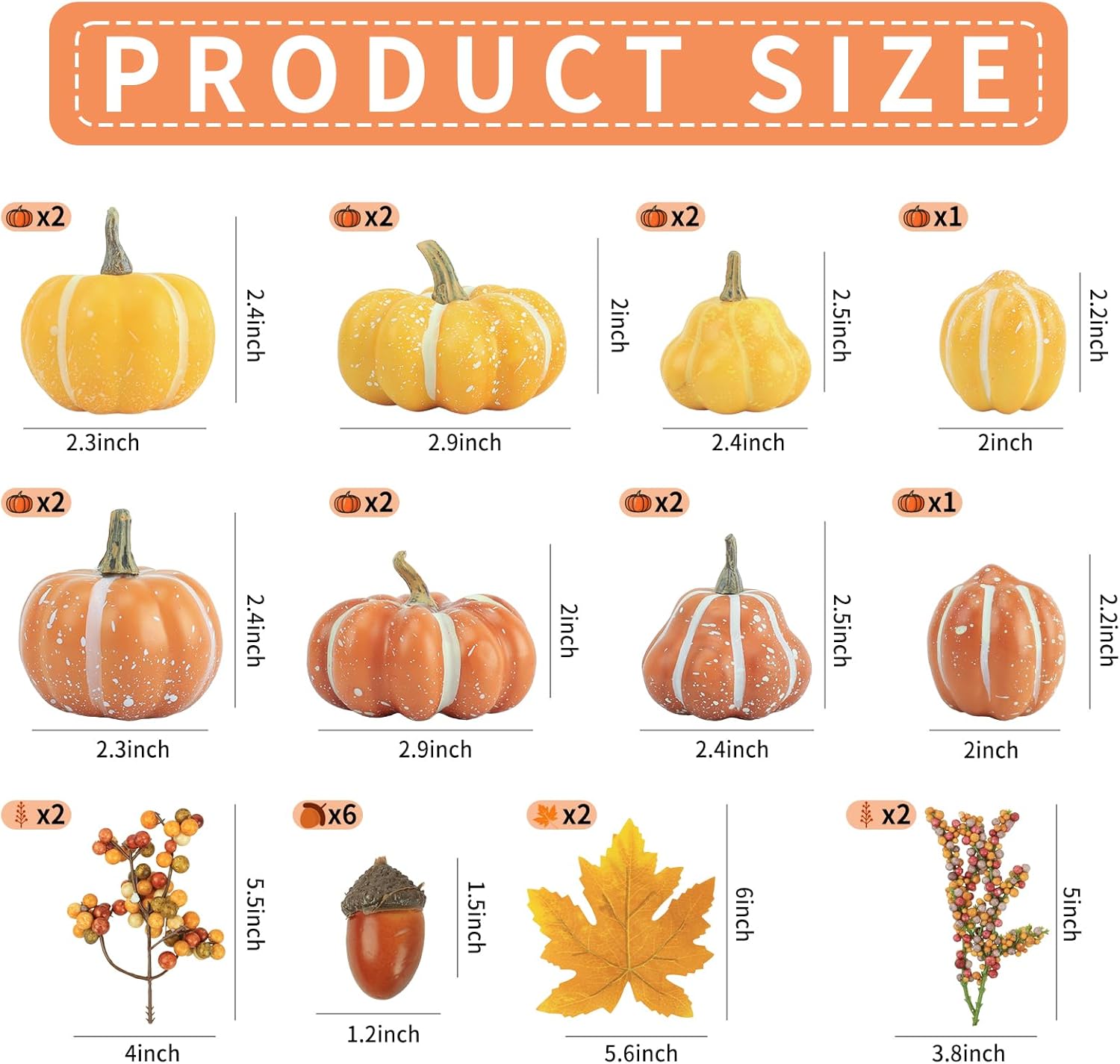 22 PCS Kit Artificial Pumpkins Decorations, Plastic Pumpkins for Autumn Decorating Kit Halloween Thanksgiving Party Supplies