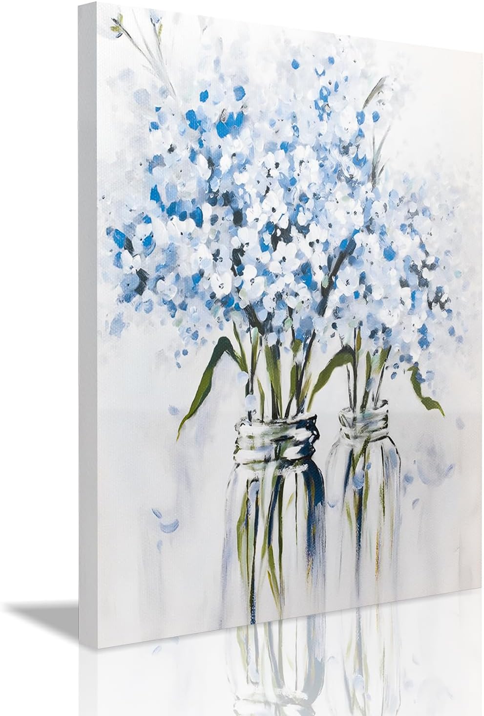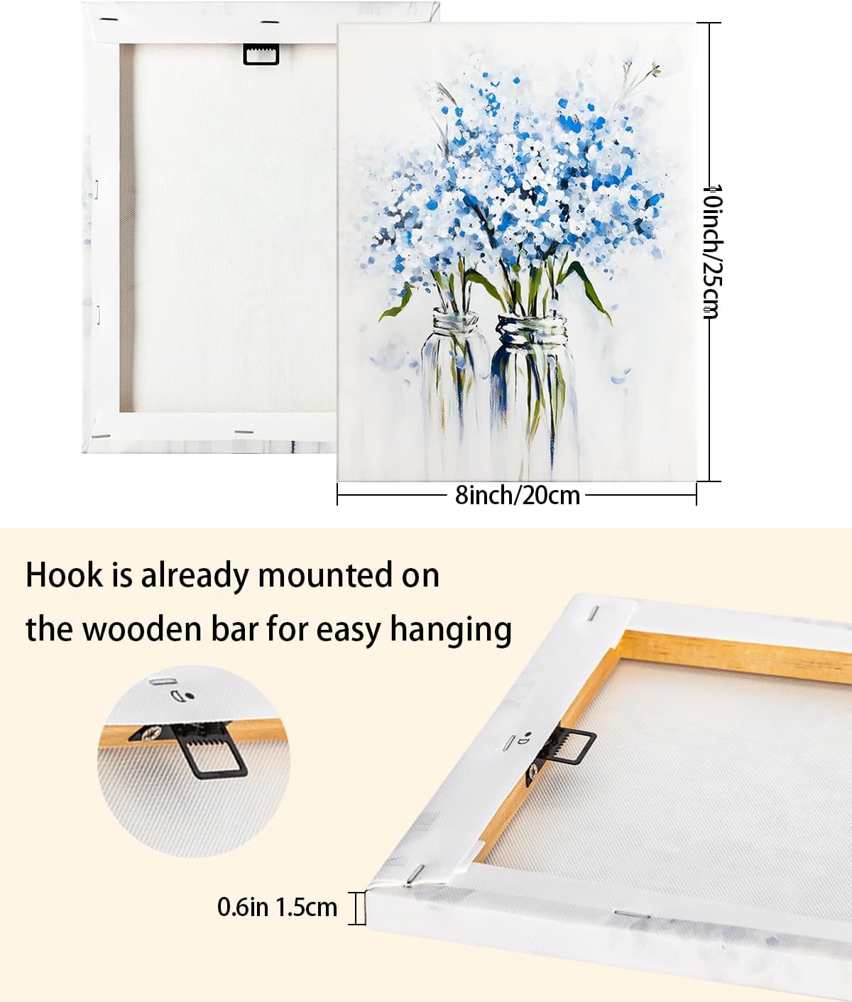 - Blue Flower Bouquet Wall Art】The abstract depiction showcases the elegance and beauty of the flowers, with soft and vibrant blue blossoms that resemble a lively painting, bringing joy and warmth to your space.