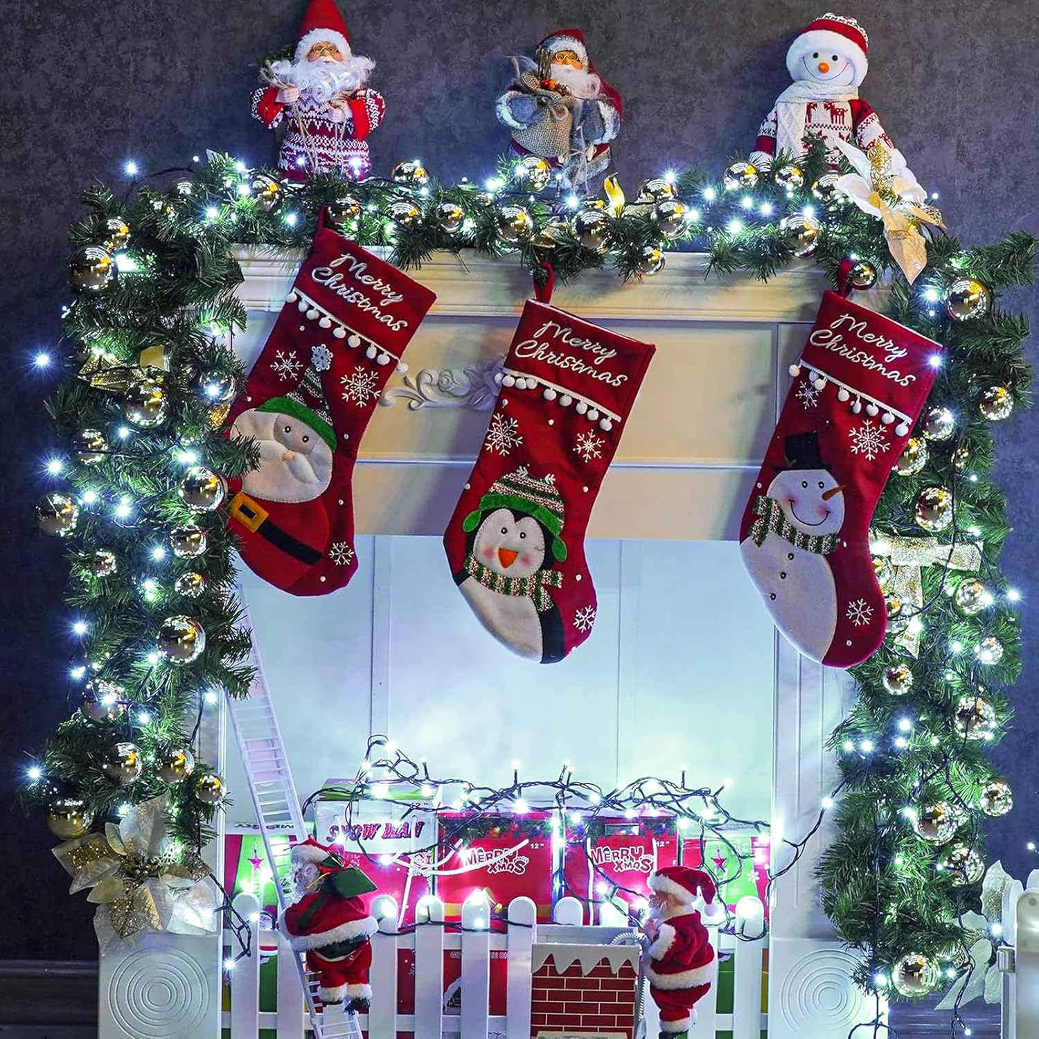 - 8 Lighting Modes: This white Christmas lights has 8 lighting modes to fit different occasion and mood needs, including combination, in waves, sequential, slo-glo, chasing/flash, slow fade, twinkle/flash, steady on, adjust the lighting modes by pressing the round button on the adapter. The perfect ambient light for family gatherings and holiday celebrations.