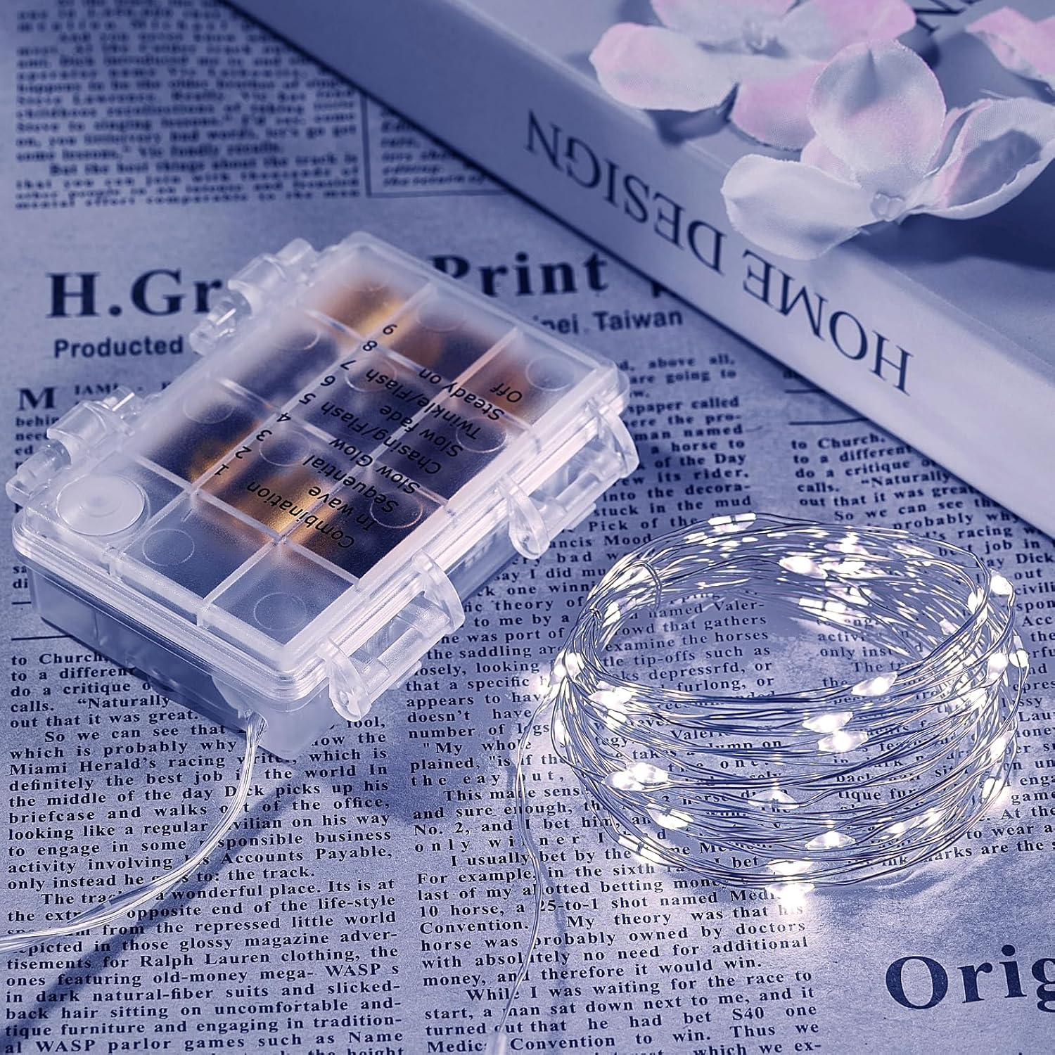 2 Pack 65.6 Ft. Battery Operated Outdoor String Lights with Remote & Timer, LED Cool Whit Fairy Lights, Waterproof Twinkle Lights for Bedroom, Dorm, Mason Jar, Wedding, Party, Christmas