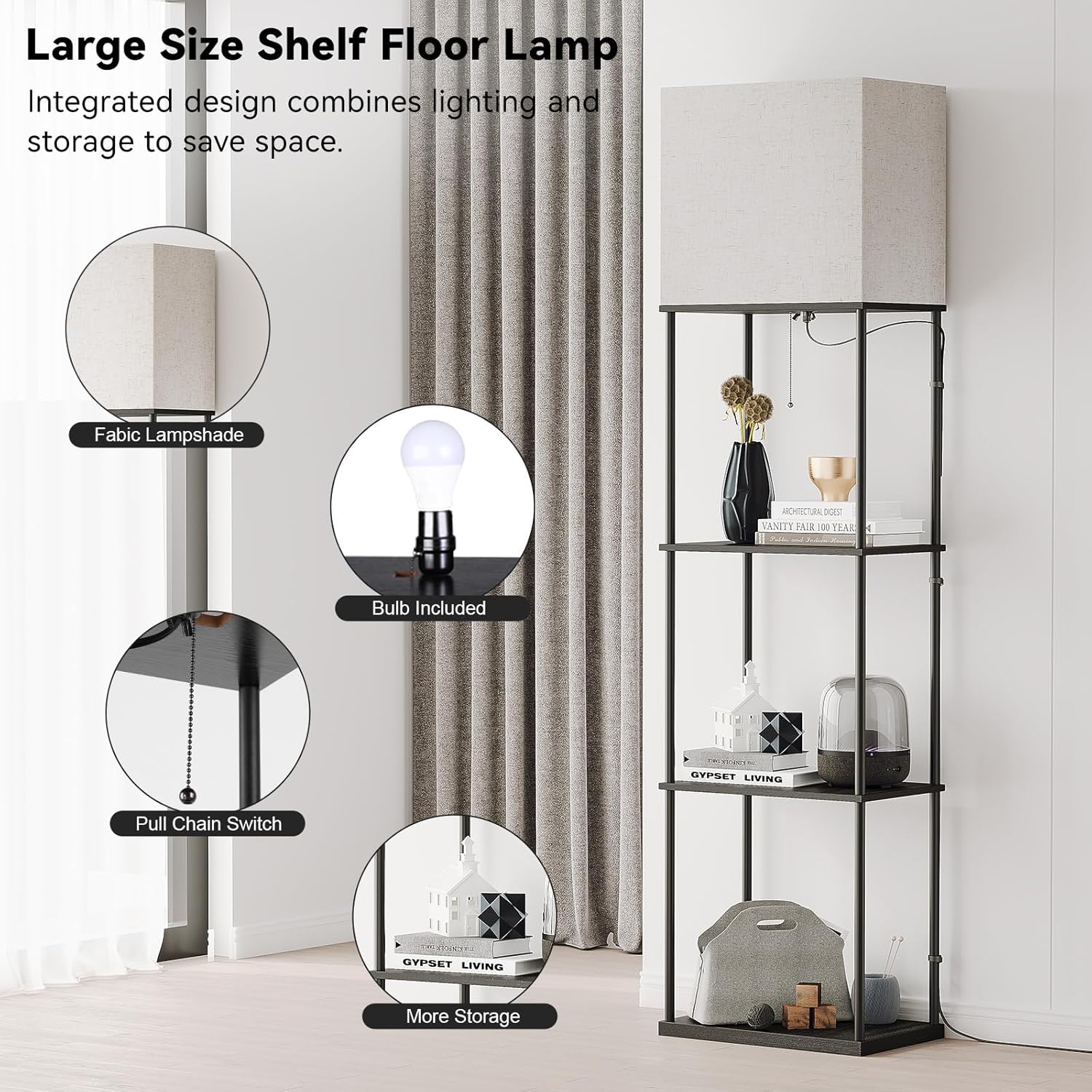 - Minimalist Design: The contemporary stand up lamp matches asian, mid century modern, rustic, country and farmhouse decor thanks to its diverse lighting effects and simple lines. The wider, larger storage space design keeps your room clutter-free and tidy.