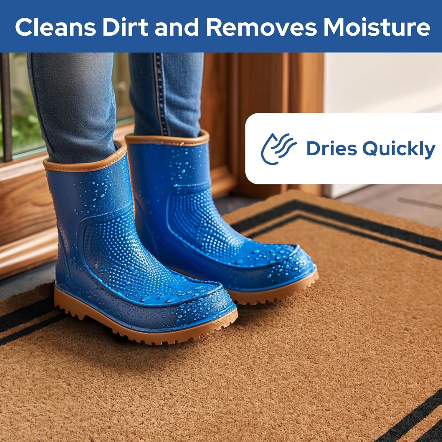 - Made of Durable Coir - Our doormats are made of 100% coconut coir fibers, one of the strongest and most durable natural fibers on earth. The high-quality coir used in its construction ensures that it will maintain its shape and appearance, even with heavy use. Please note that light shedding may occur, as is common with all natural coir mats. Additionally, avoid completely soaking mat with water as this could lead to natural coir runoff.