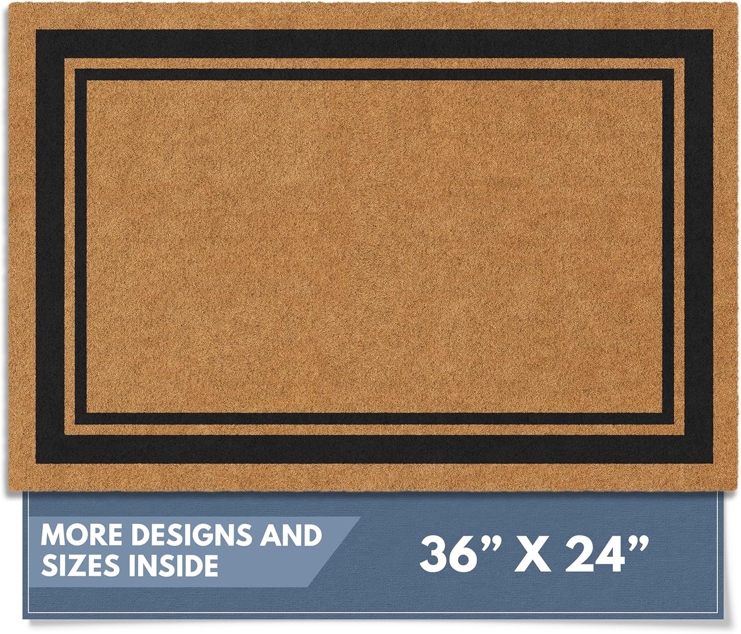 Barnyard Designs Natural Coco Coir Heavy Duty Backing Doormat - Large Cute Non-Slip Front Door Welcome Mat for Outside Entrance or Porch Entry, Brown (24x36, Border)