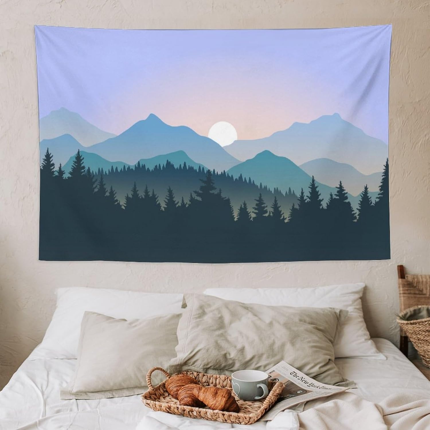 HZOHNAGO Mountain Tapestry Forest Mountain Sunrise Pattern Printed Wall Tapestry Wall Hanging for Bedroom Living Room Dorm 60" W x 40" H
